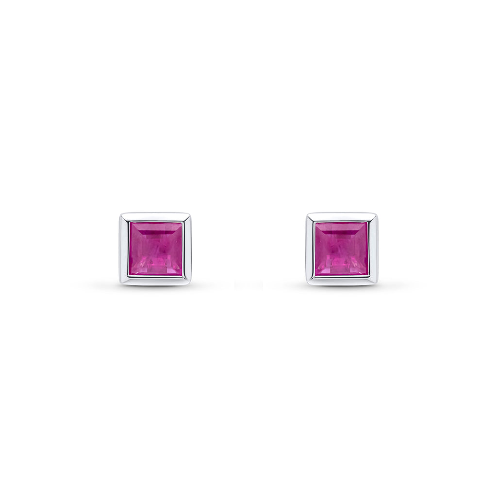 9CT White Gold Square Ruby Rubover Stud Earrings 4mm