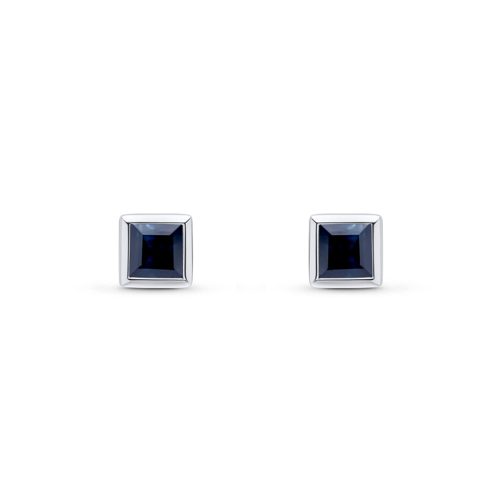 9CT White Gold Square Sapphire Rubover Stud Earrings 4mm