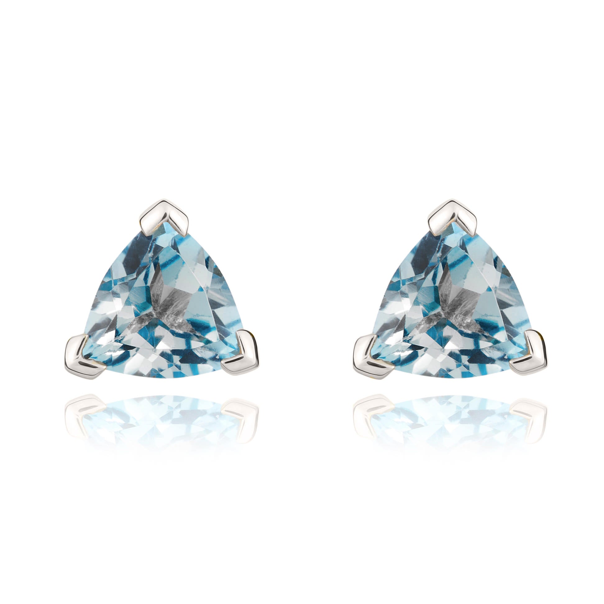 9CT White Gold Triangle Swiss Blue Topaz Claw Stud Earrings 6mm
