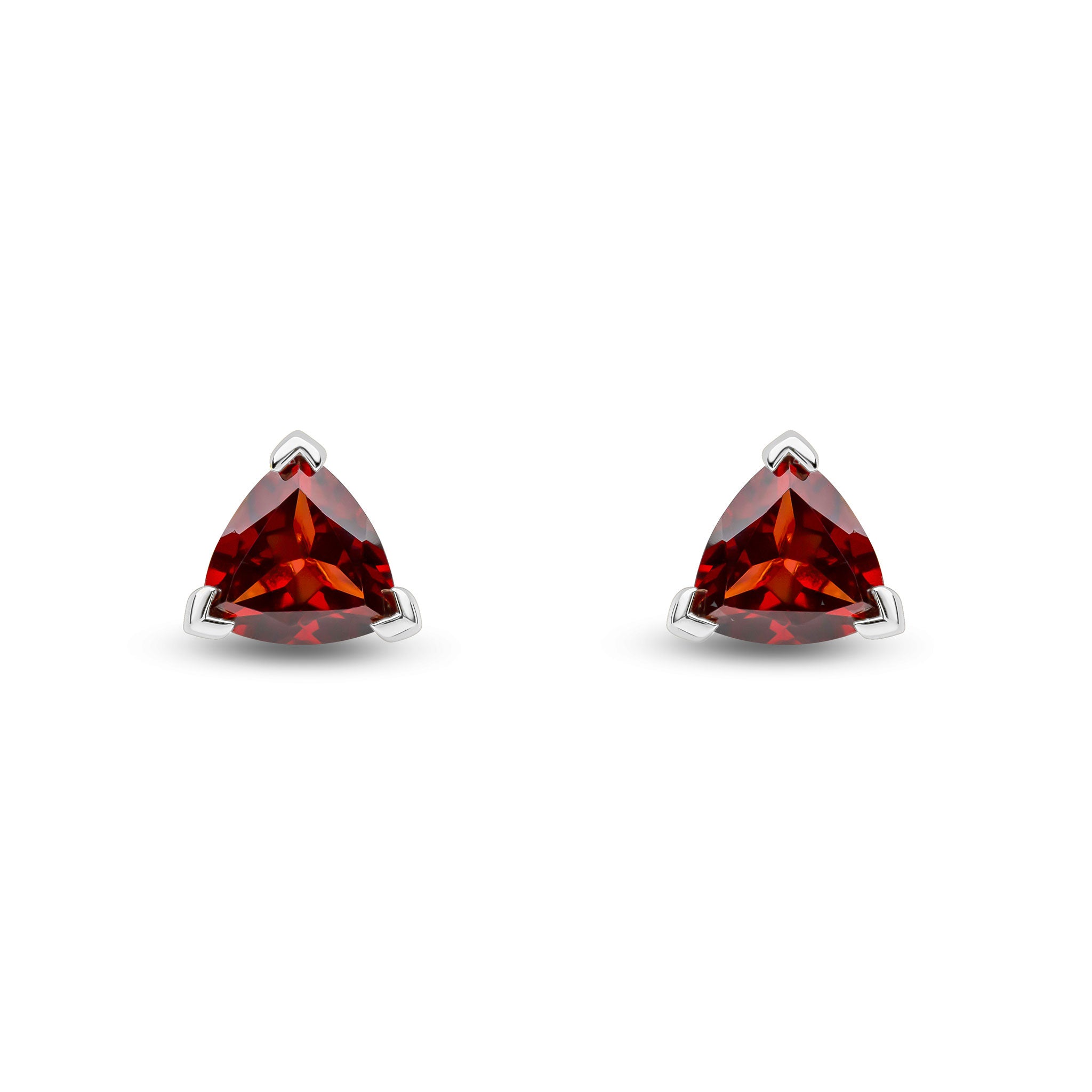 9CT White Gold Triangle Trilliant Garnet Claw Stud Earrings 6mm