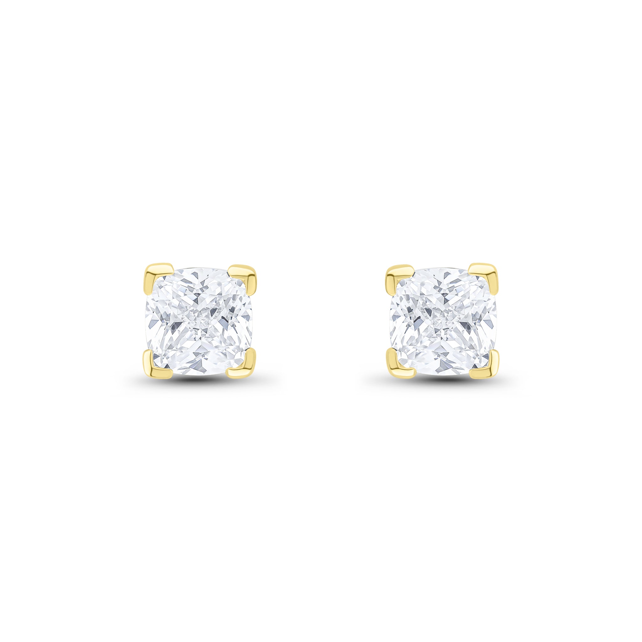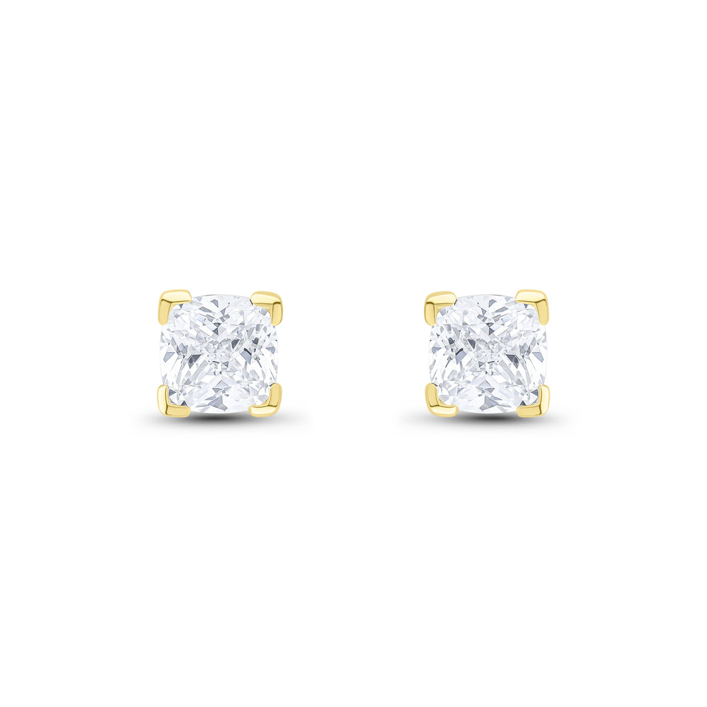 9CT Yellow Gold Cushion Cubic Zirconia CZ Claw Stud Earrings 6mm