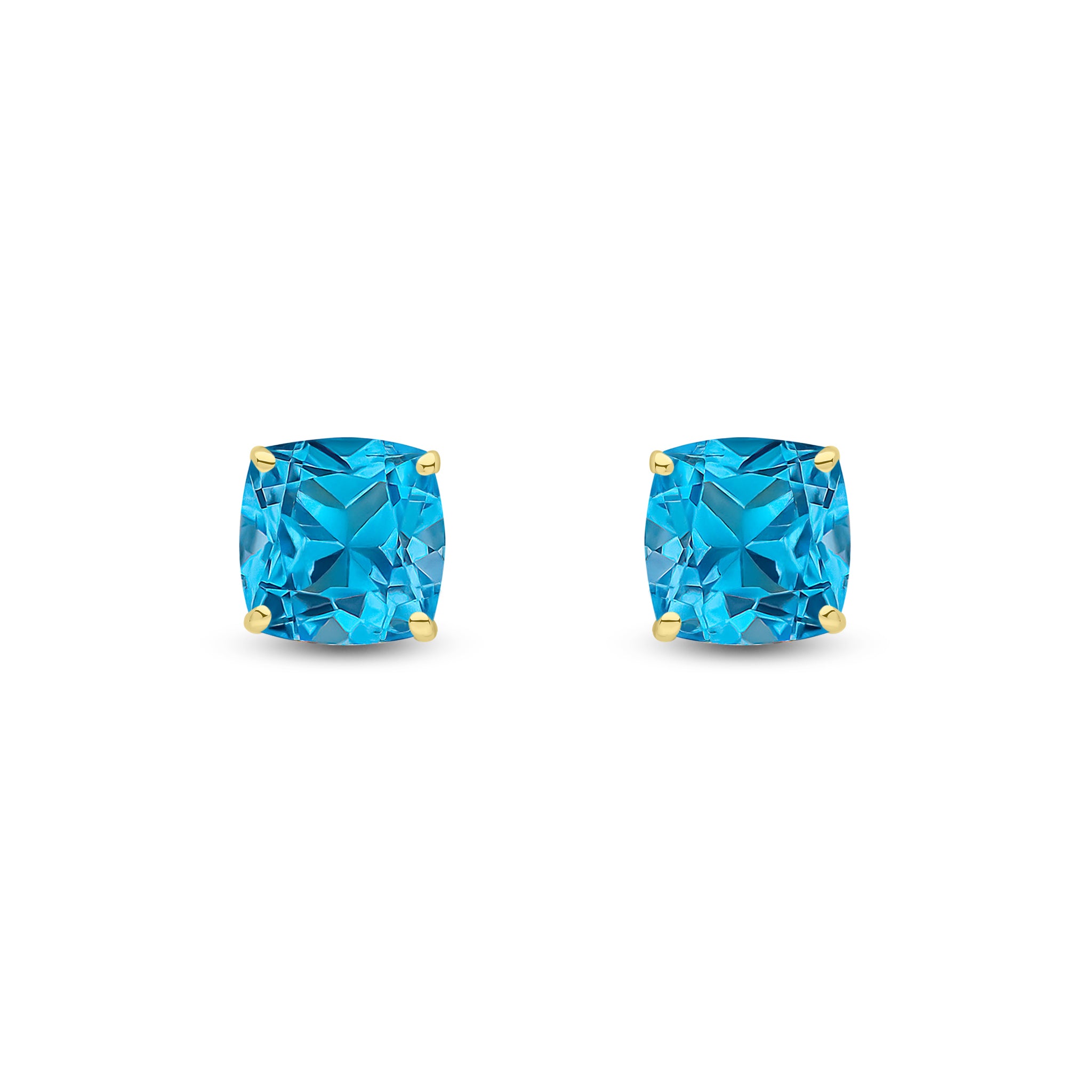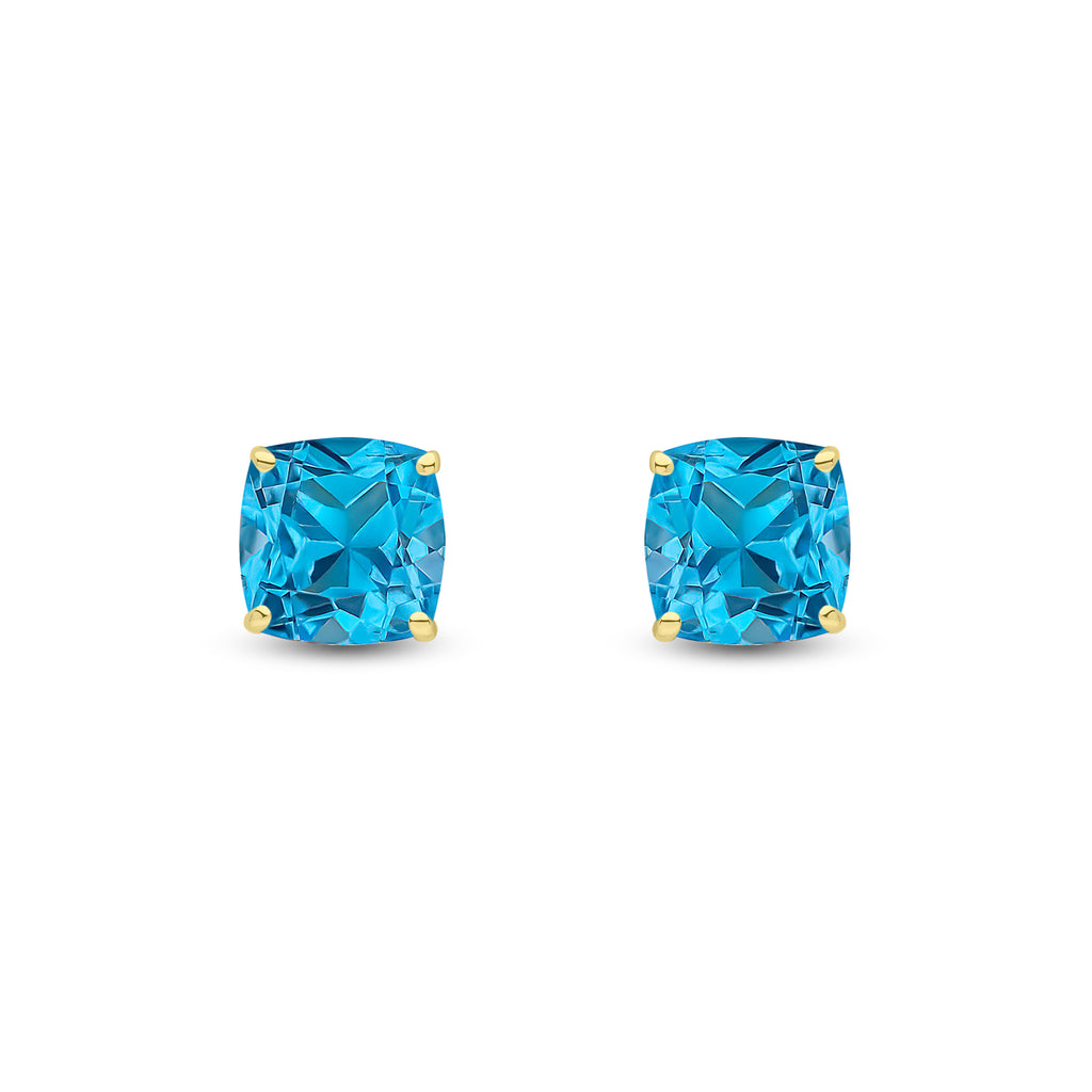 9CT Yellow Gold Cushion Swiss Blue Topaz Claw Stud Earrings 8mm