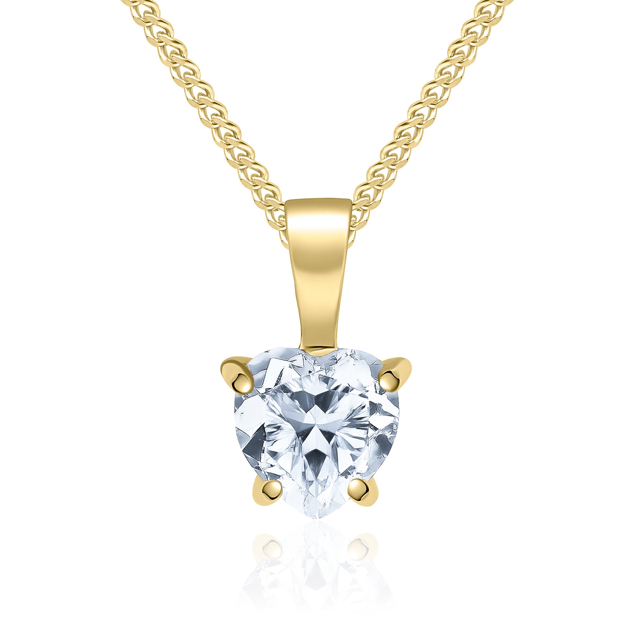 9CT Yellow Gold Heart Cubic Zirconia CZ Claw Pendant 6mm