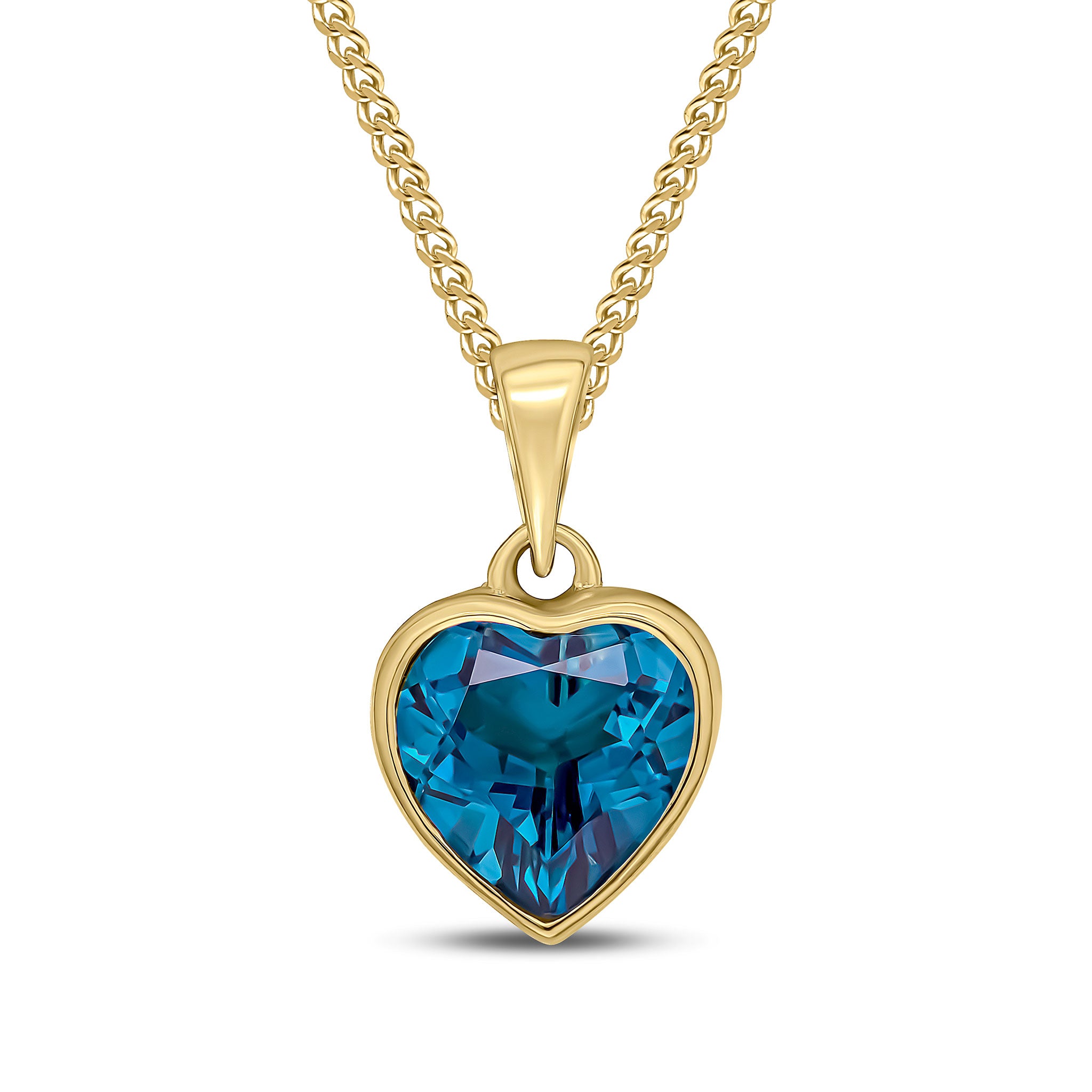 9CT Yellow Gold Heart London Blue Topaz Rubover Pendant 8mm