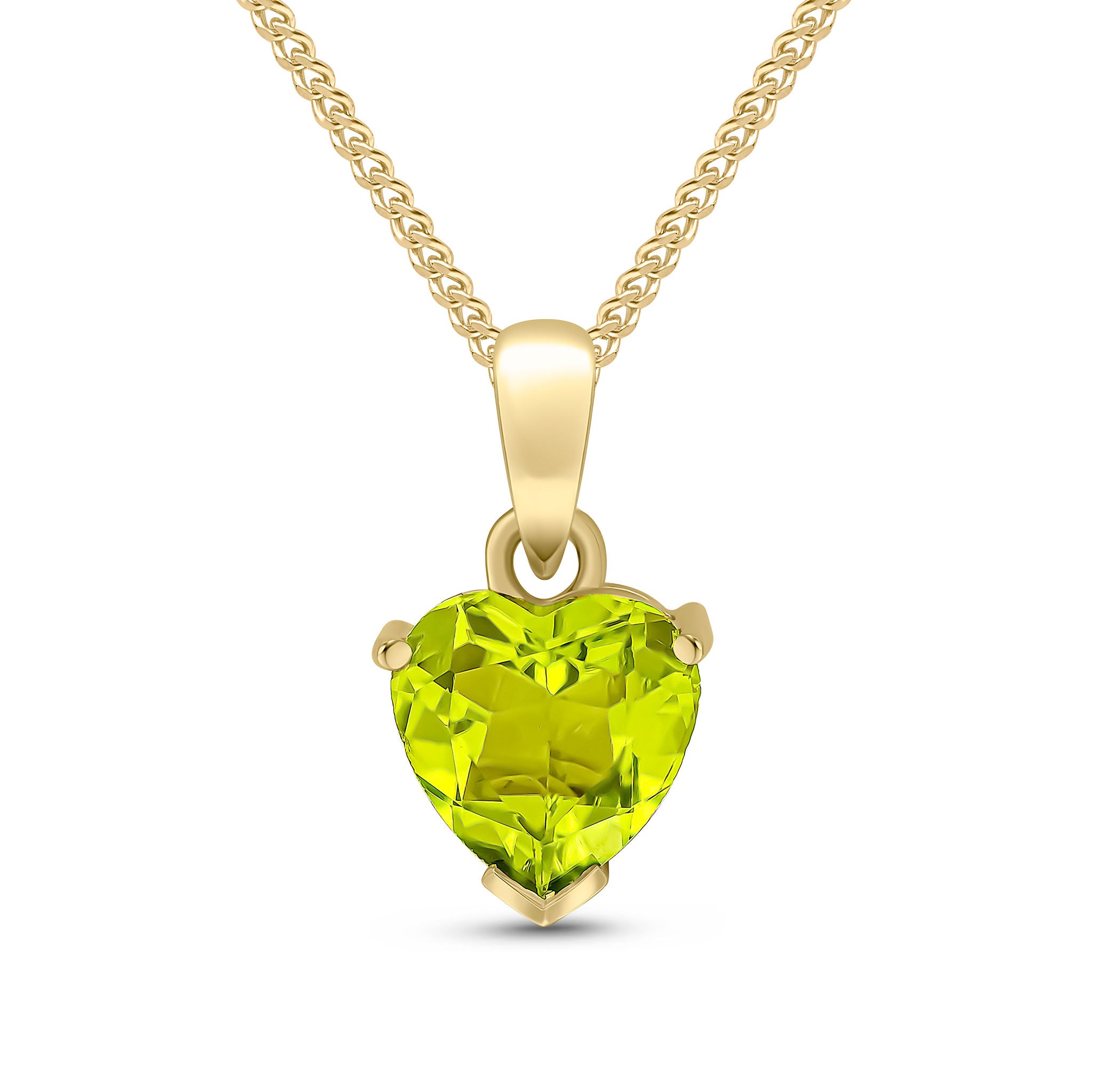 9CT Yellow Gold Heart Peridot Claw Pendant 8mm