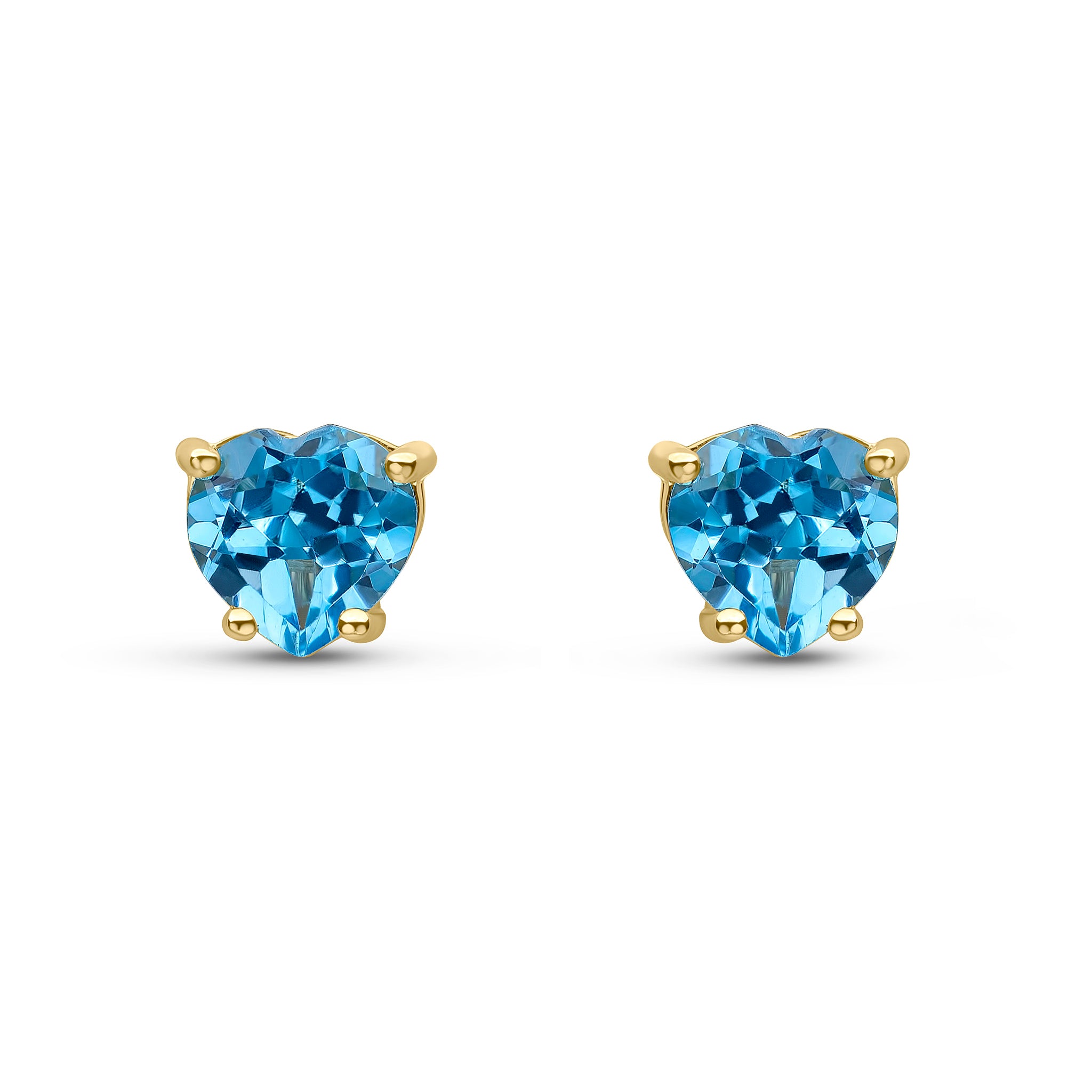 9CT Yellow Gold Heart Swiss Blue Topaz Claw Stud Earrings 6mm