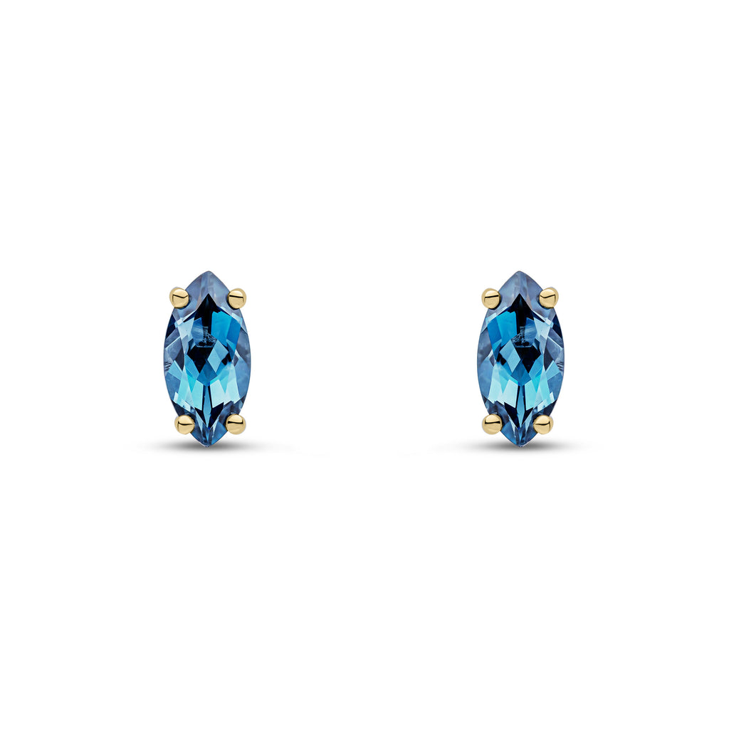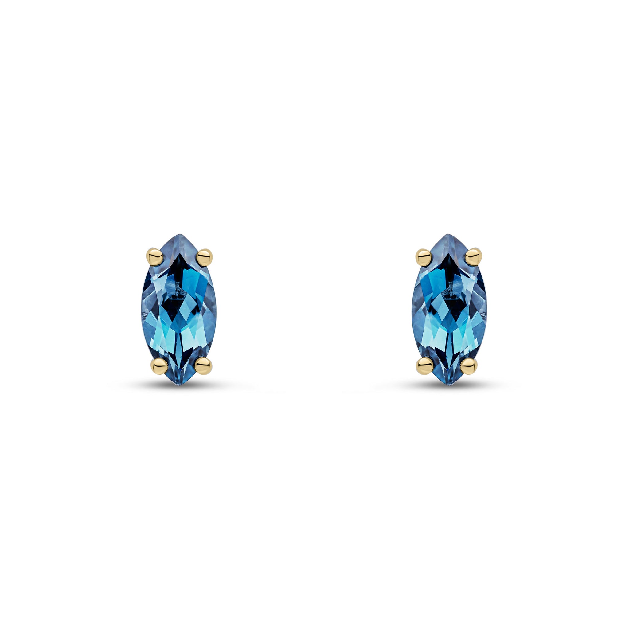 9CT Yellow Gold Marquise London Blue Topaz Claw Stud Earrings 8x4mm