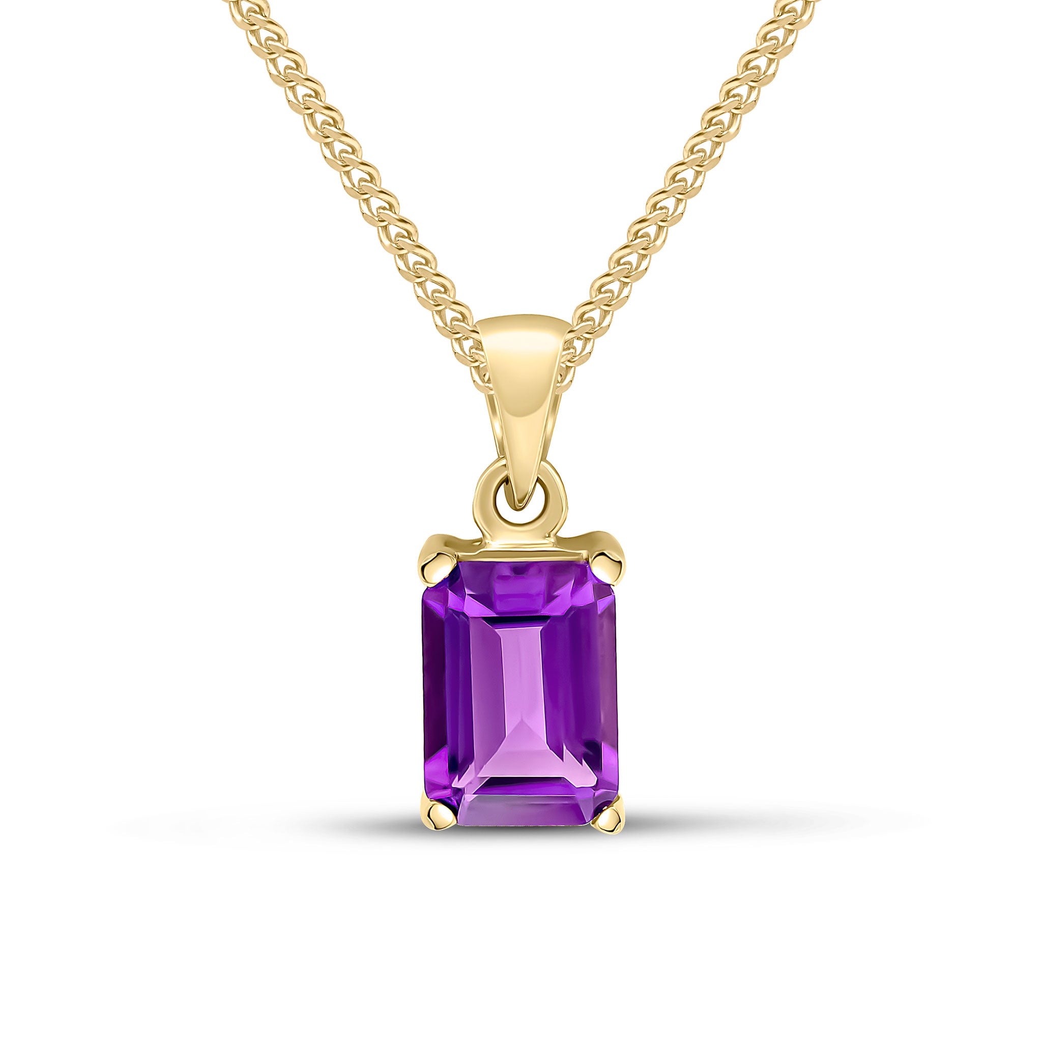9CT Yellow Gold Octagonal Amethyst Claw Pendant 7x5mm