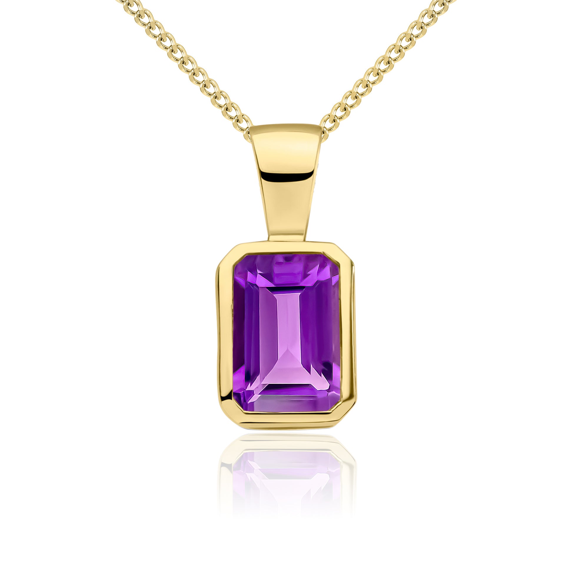 9CT Yellow Gold Octagonal Amethyst Rubover Pendant 7x5mm