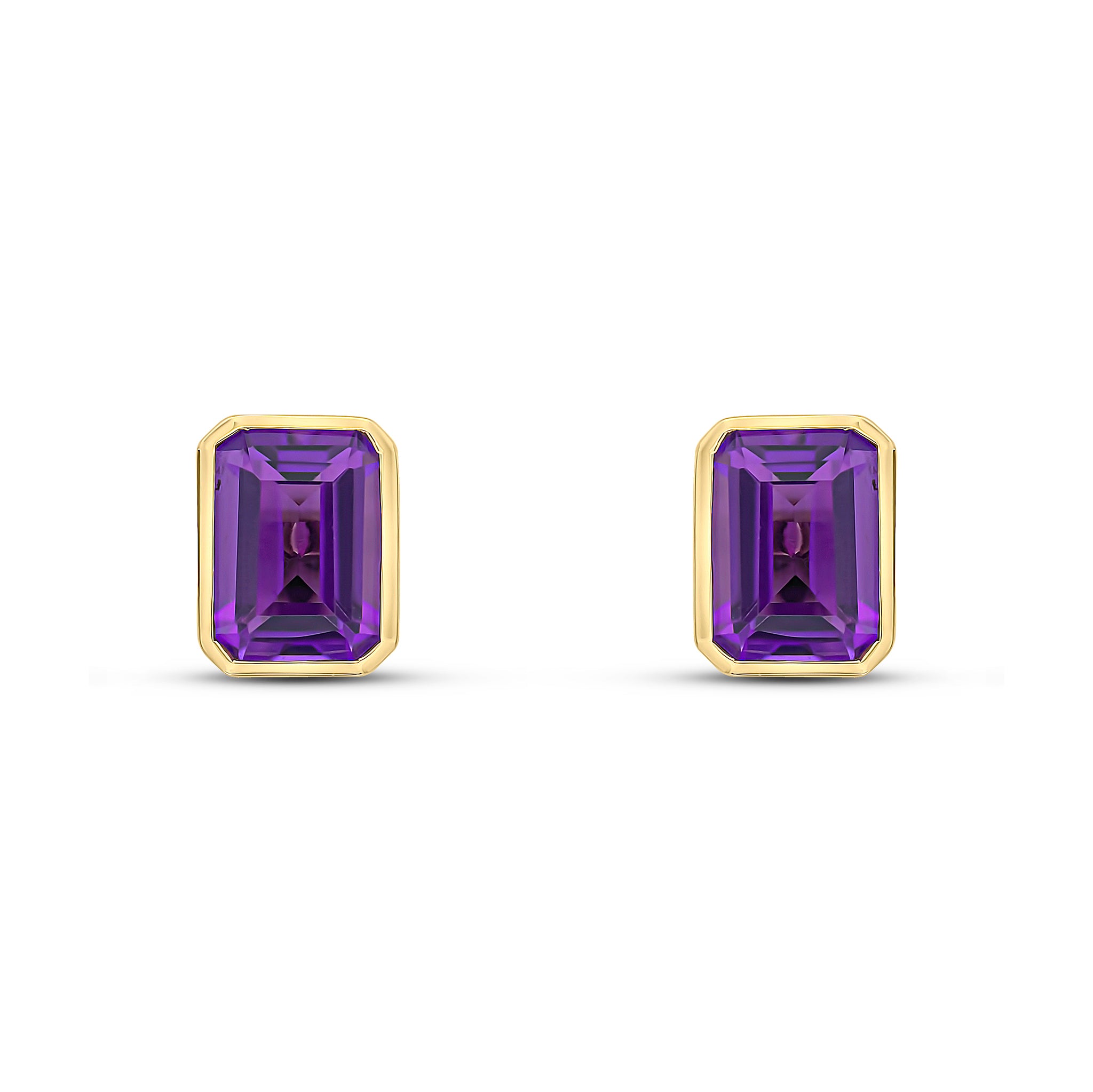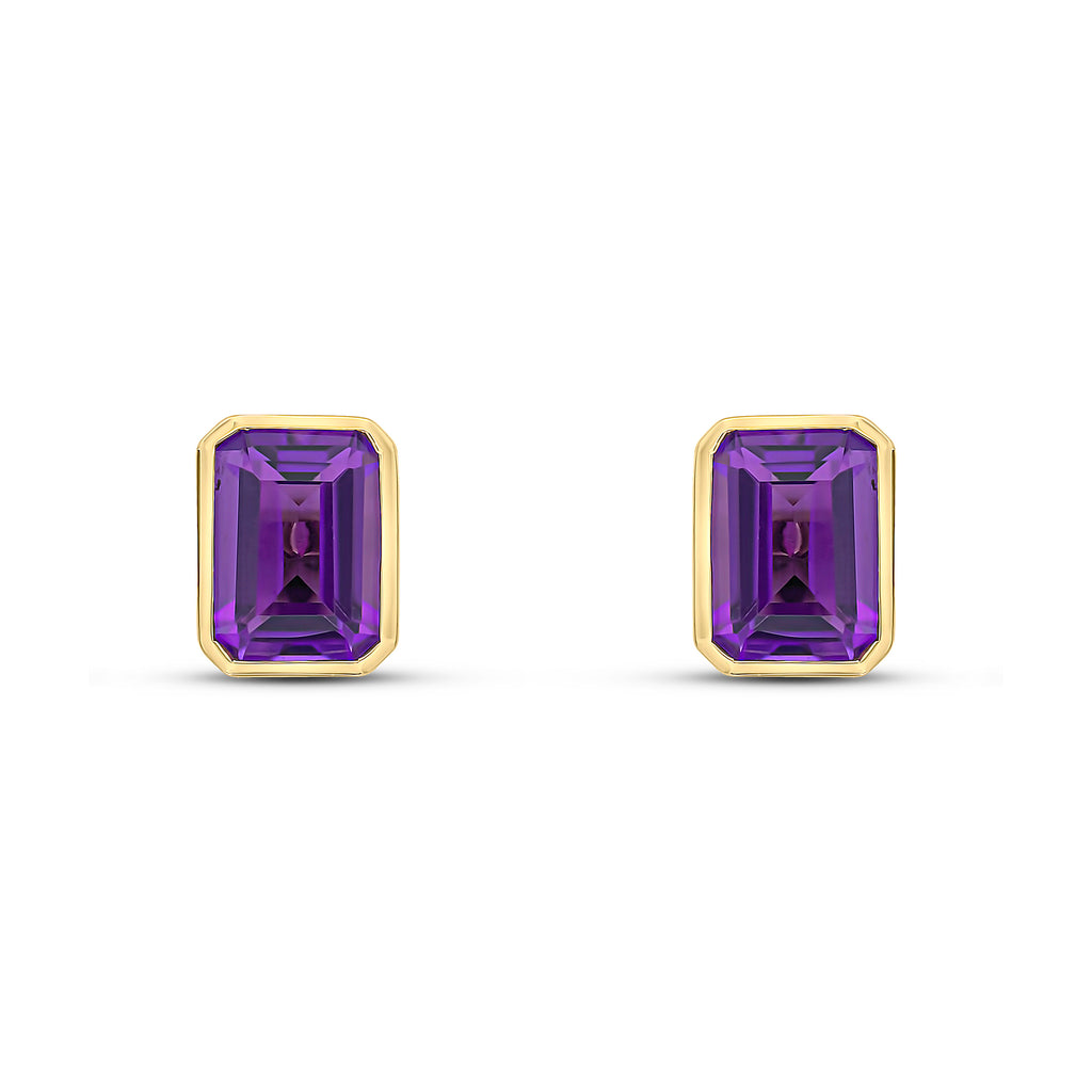 9CT Yellow Gold Octagonal Amethyst Rubover Stud Earrings 7x5mm