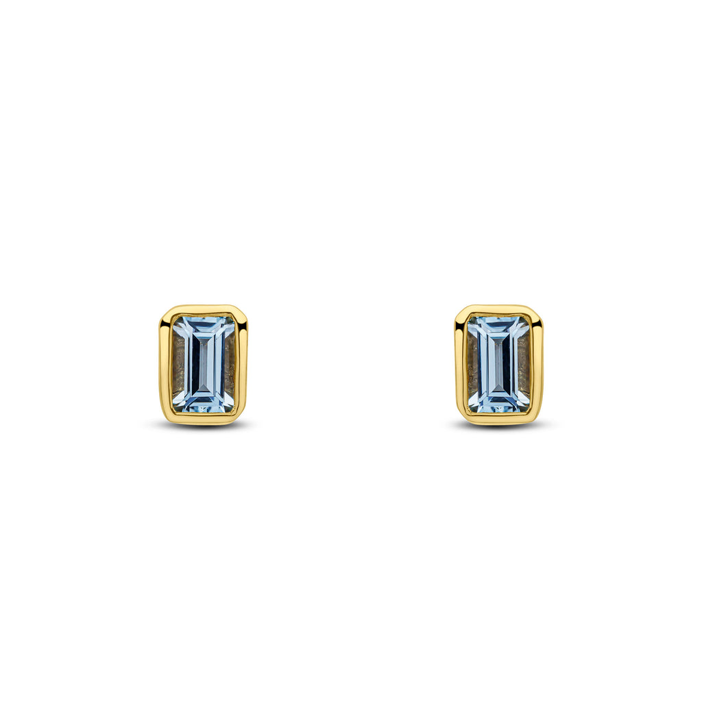 9CT Yellow Gold Octagonal Aquamarine Rubover Stud Earrings 5x3mm