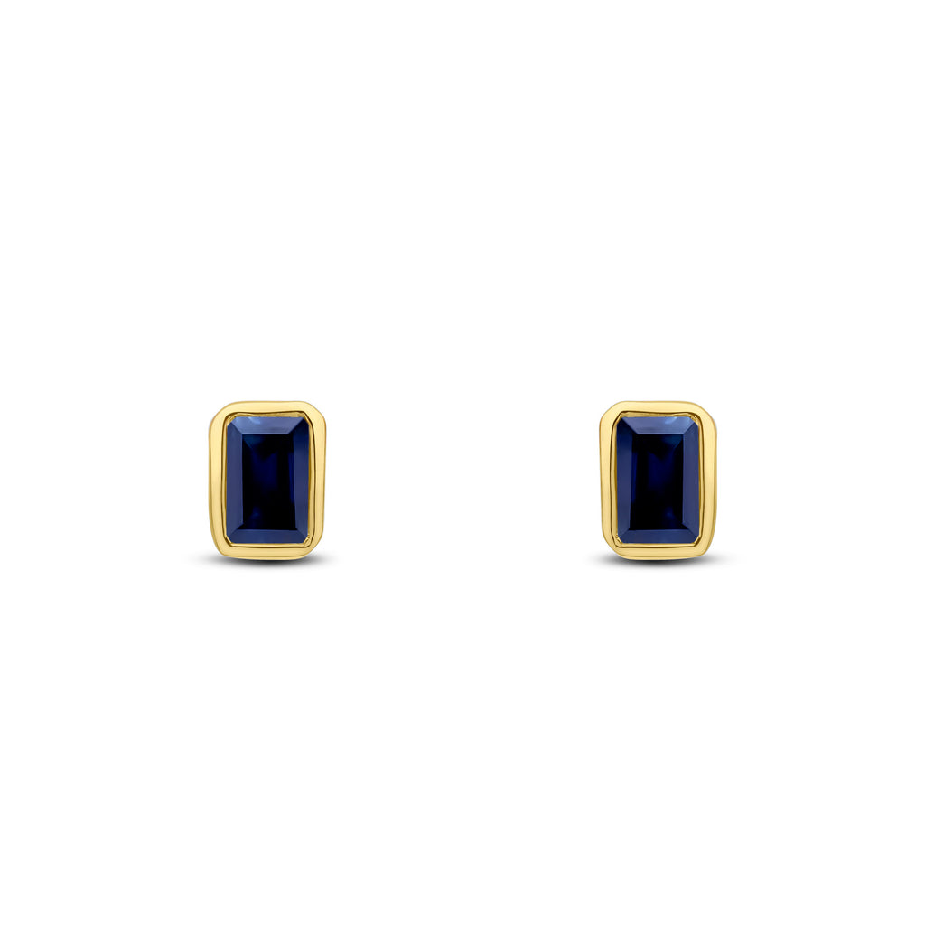 9CT Yellow Gold Octagonal Blue Sapphire Rubover Stud Earrings 5x3mm