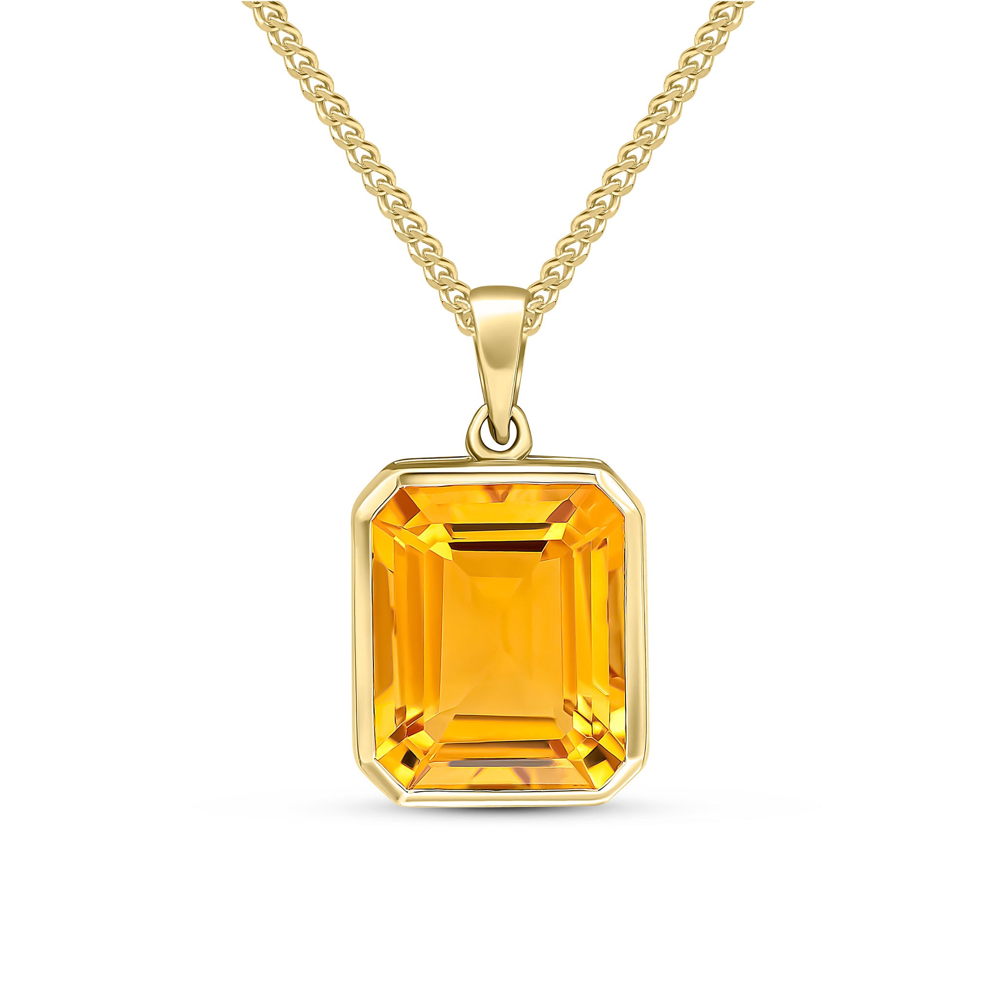 9CT Yellow Gold Octagonal Citrine Rubover Pendant 12x10mm
