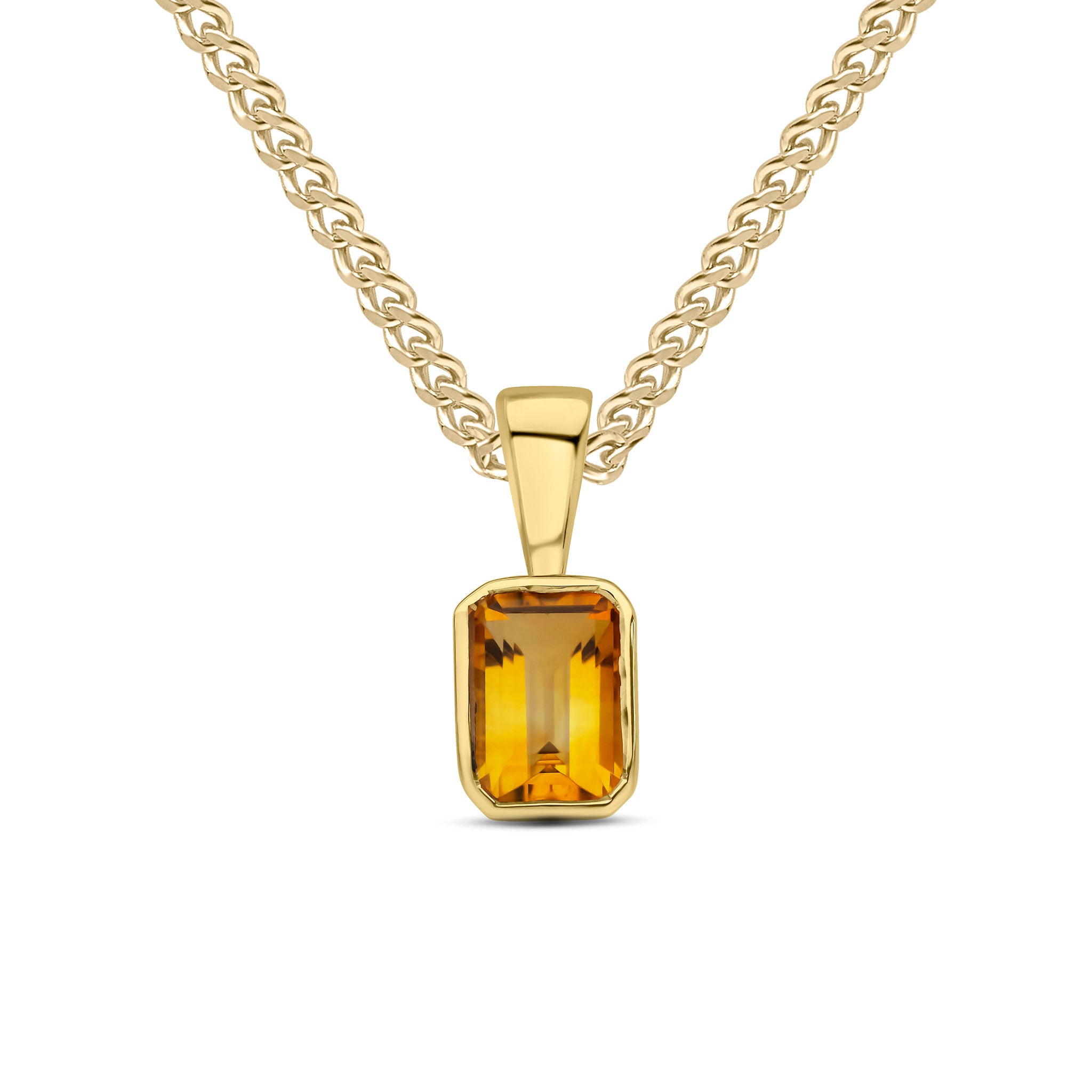 9CT Yellow Gold Octagonal Citrine Rubover Pendant 6x4mm
