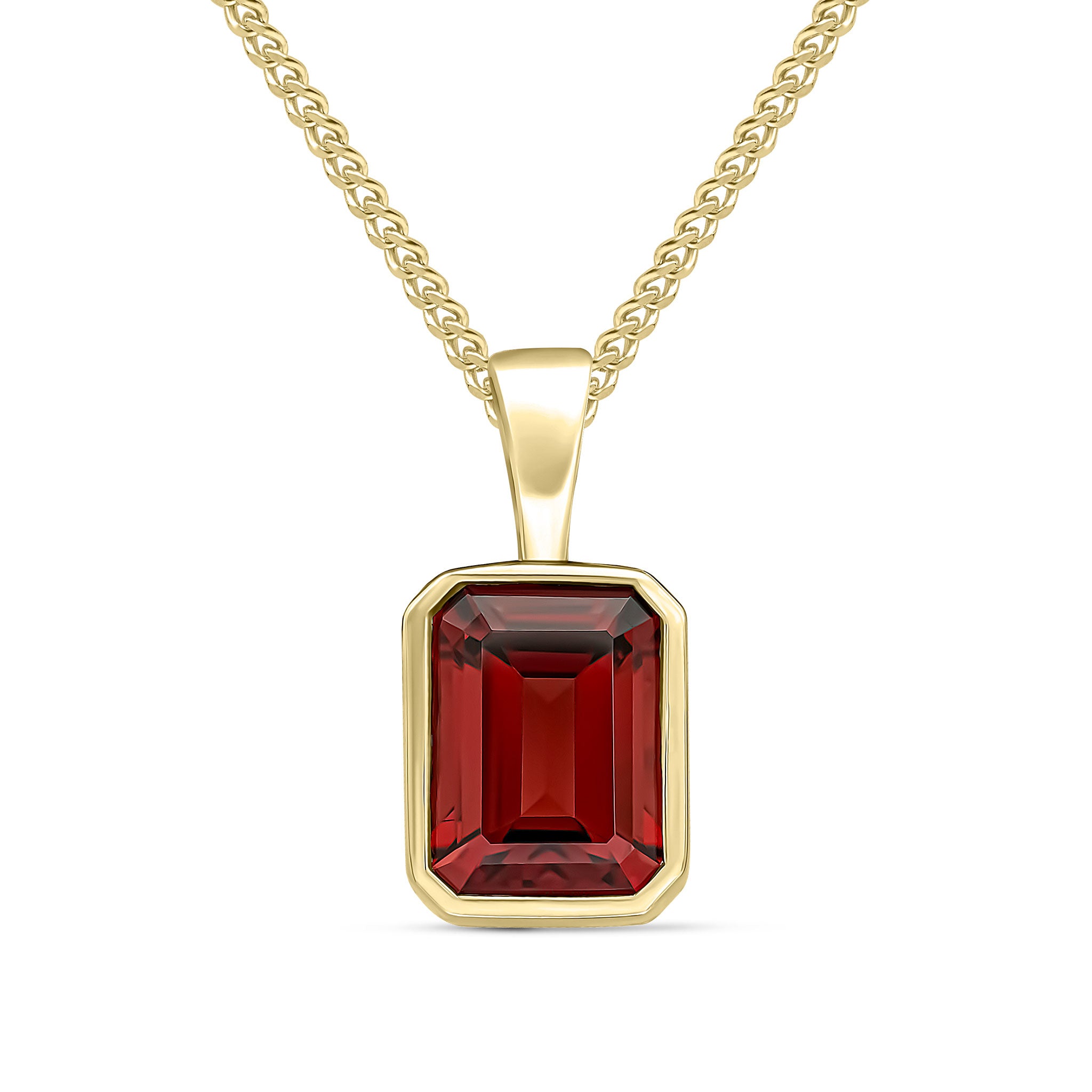 9CT Yellow Gold Octagonal Garnet Rubover Pendant 8x6mm
