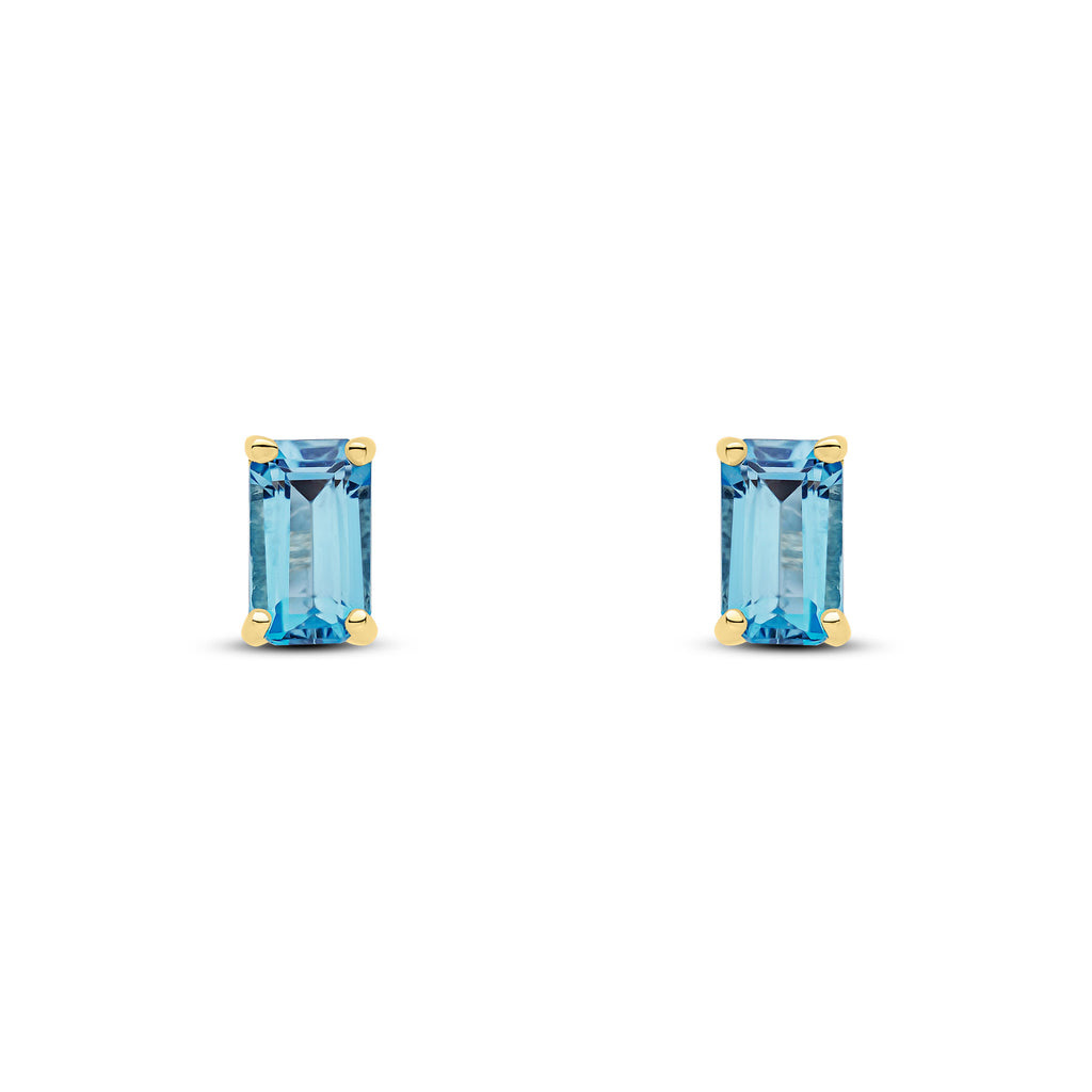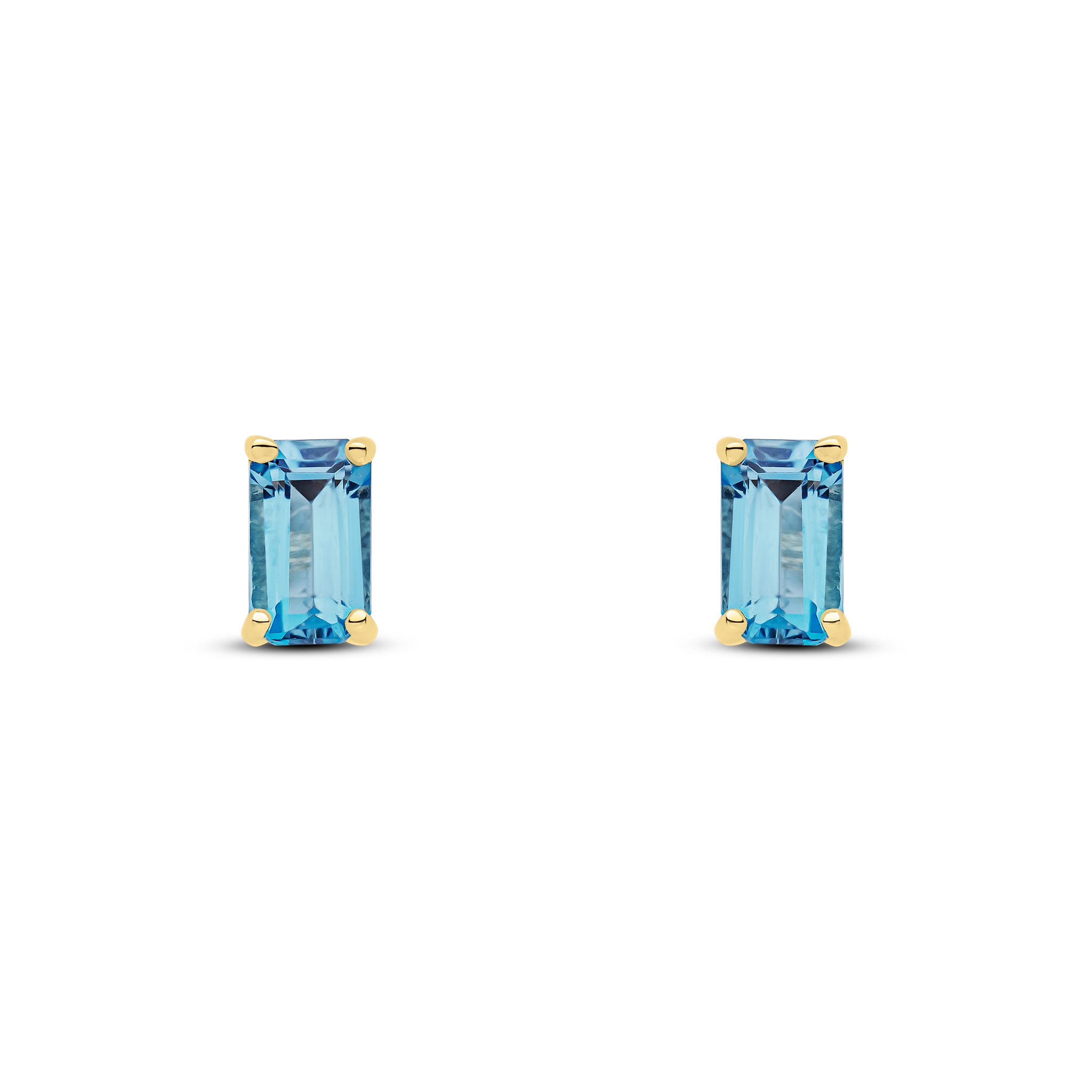 9CT Yellow Gold Octagonal London Blue Topaz Claw Stud Earrings 5x3mm