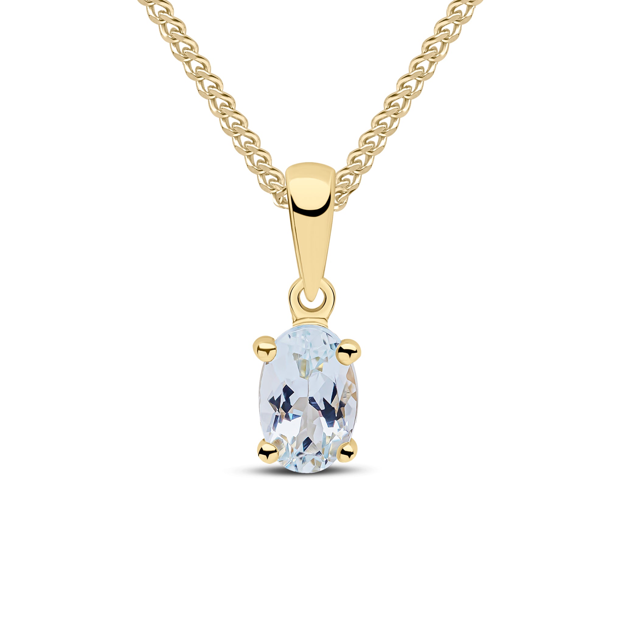 9CT Yellow Gold Oval Aquamarine Claw Pendant 6x4mm