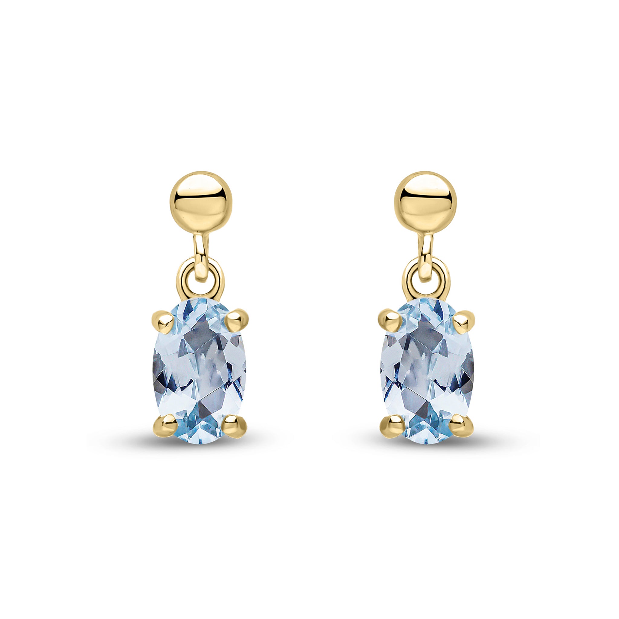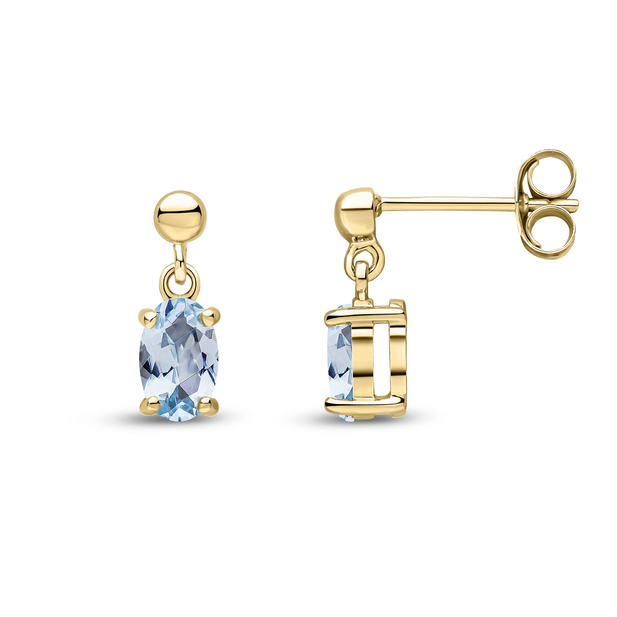 9CT Yellow Gold Oval Aquamarine Drop Earrings 6x4mm