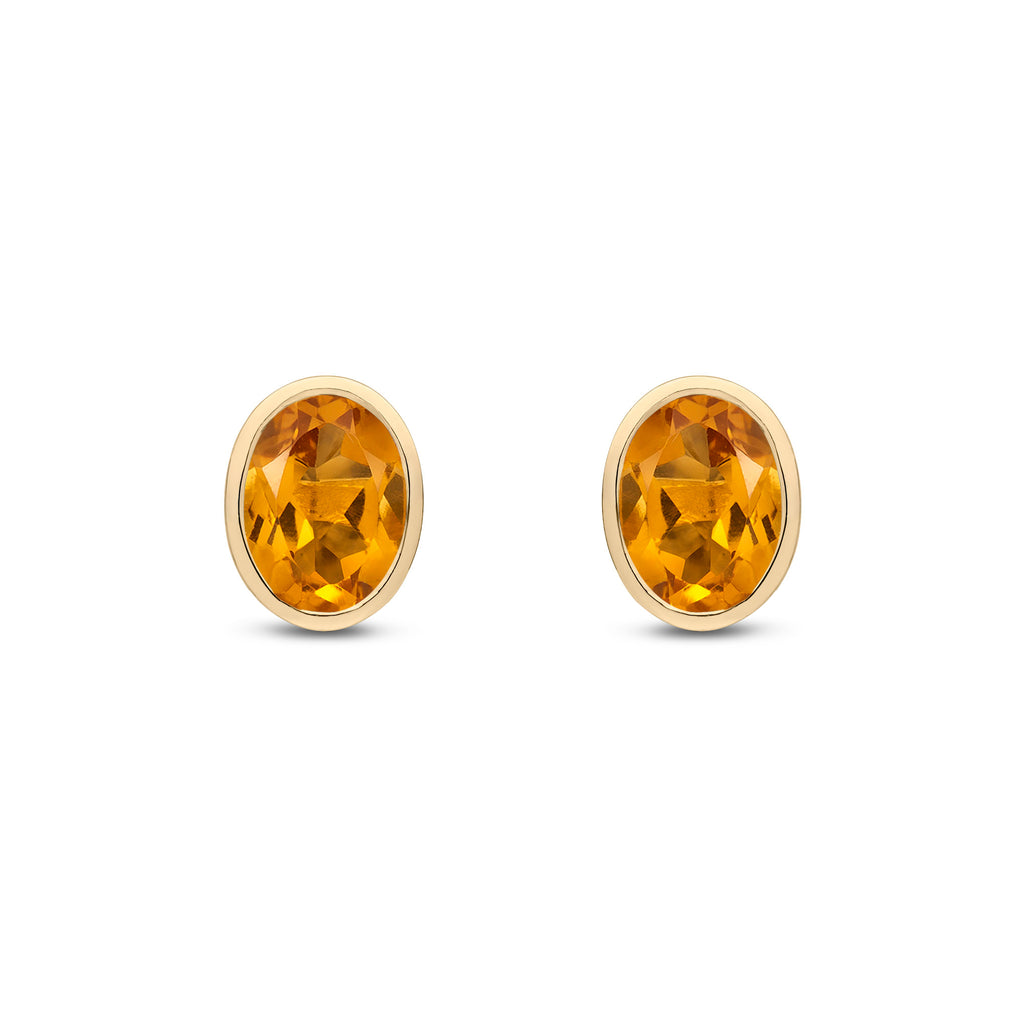9CT Yellow Gold Oval Citrine Rubover Stud Earrings 8x6mm