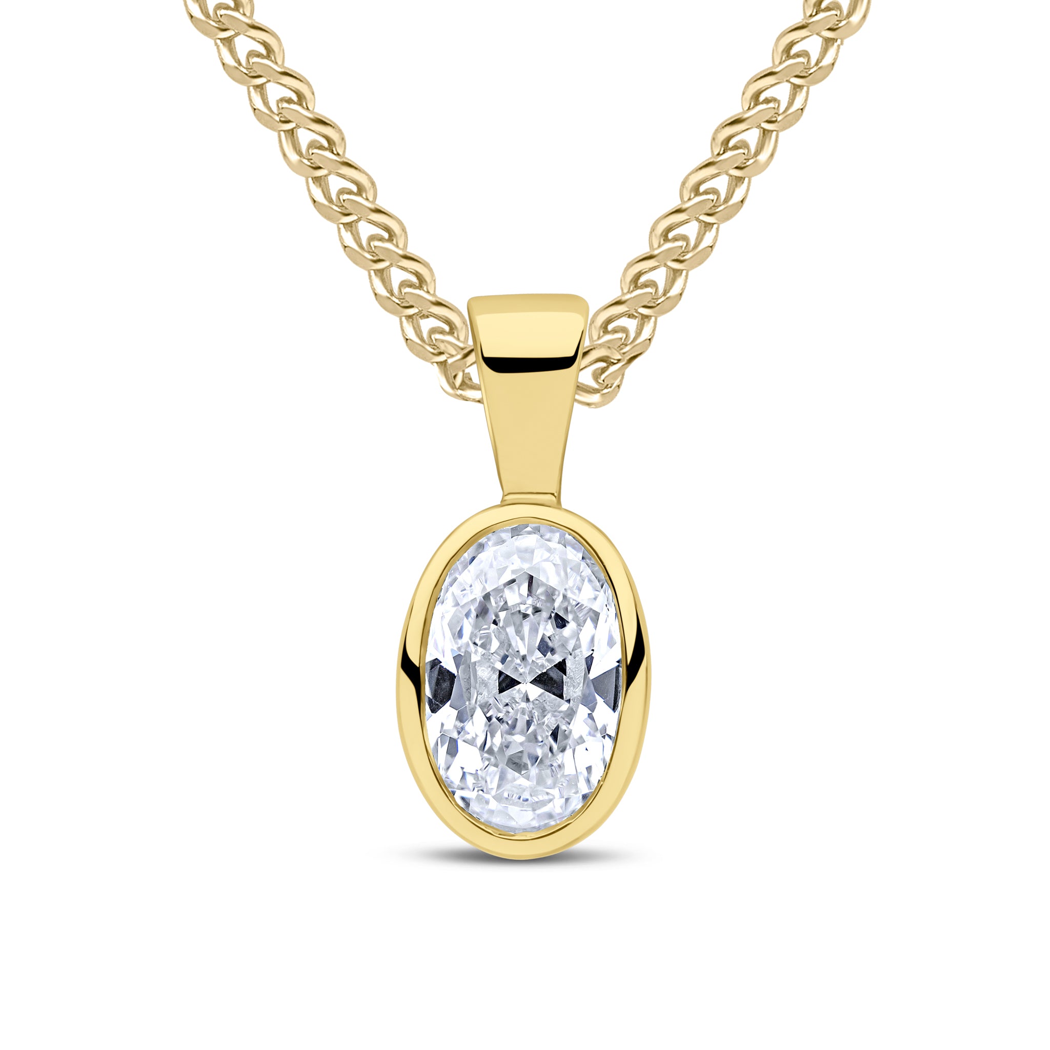 9CT Yellow Gold Oval Cubic Zirconia CZ Rubover Pendant 7x5mm