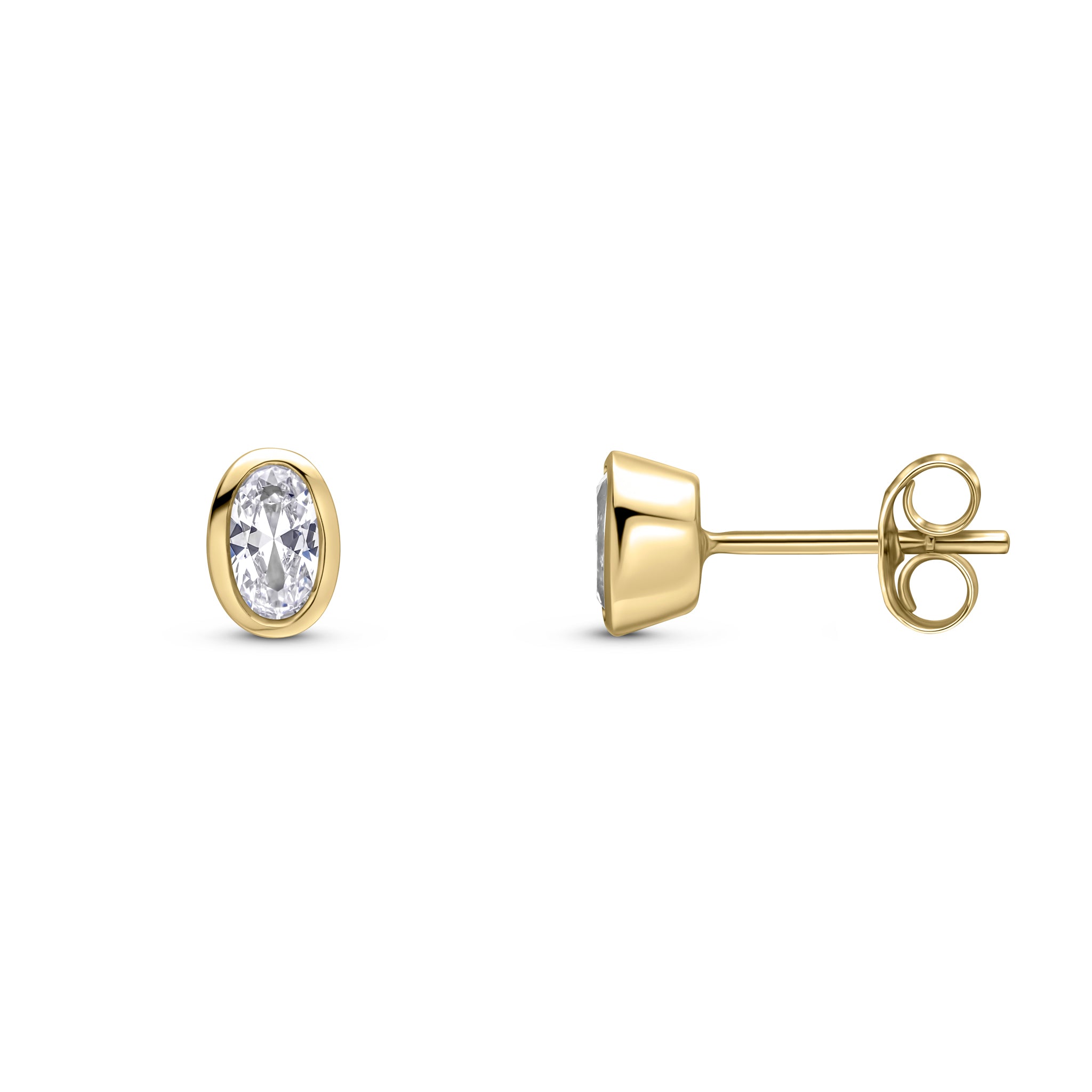 9CT Yellow Gold Oval Cubic Zirconia CZ Rubover Stud Earrings 5x3mm