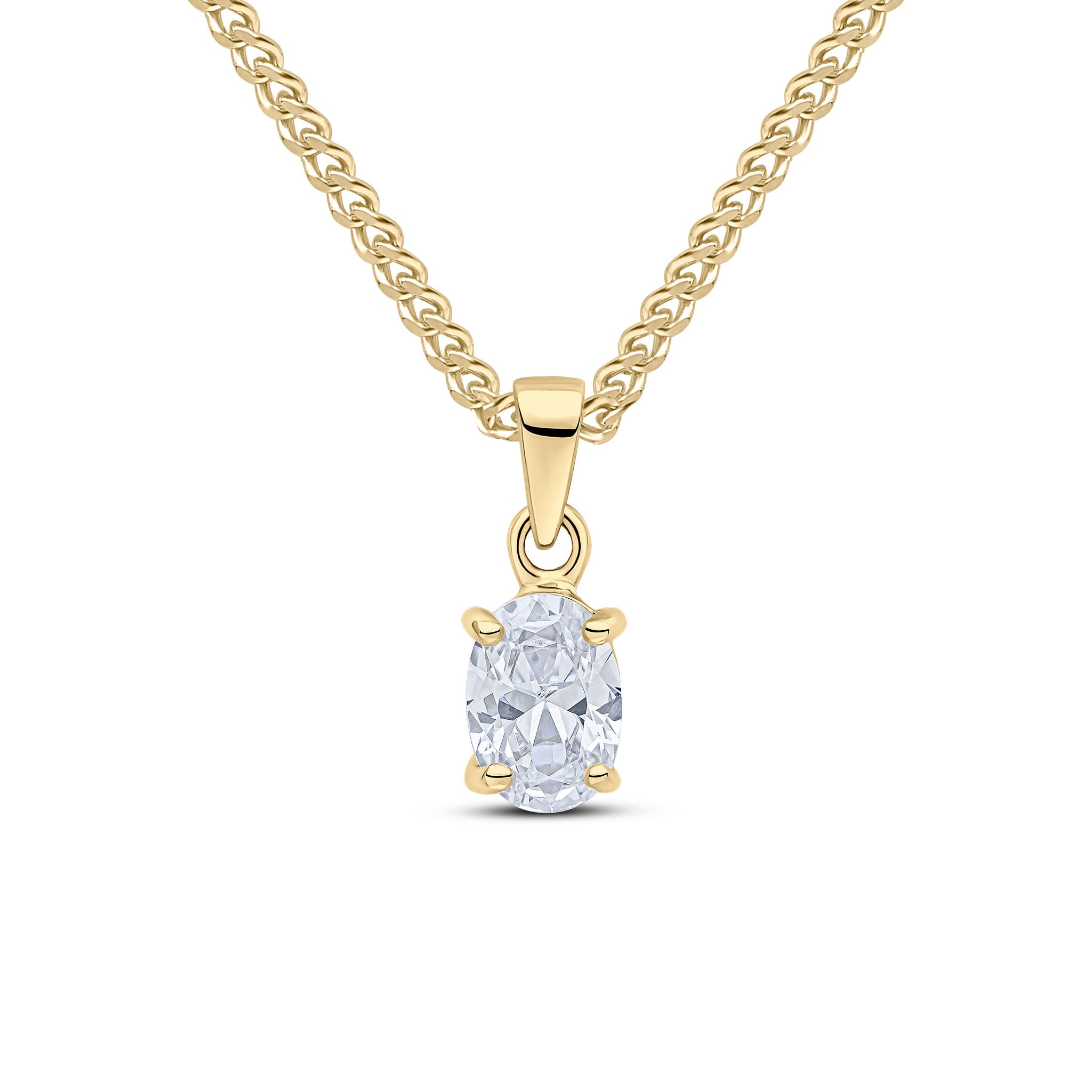 9CT Yellow Gold Oval CZ Cubic Zirconia Claw Pendant 7x5mm
