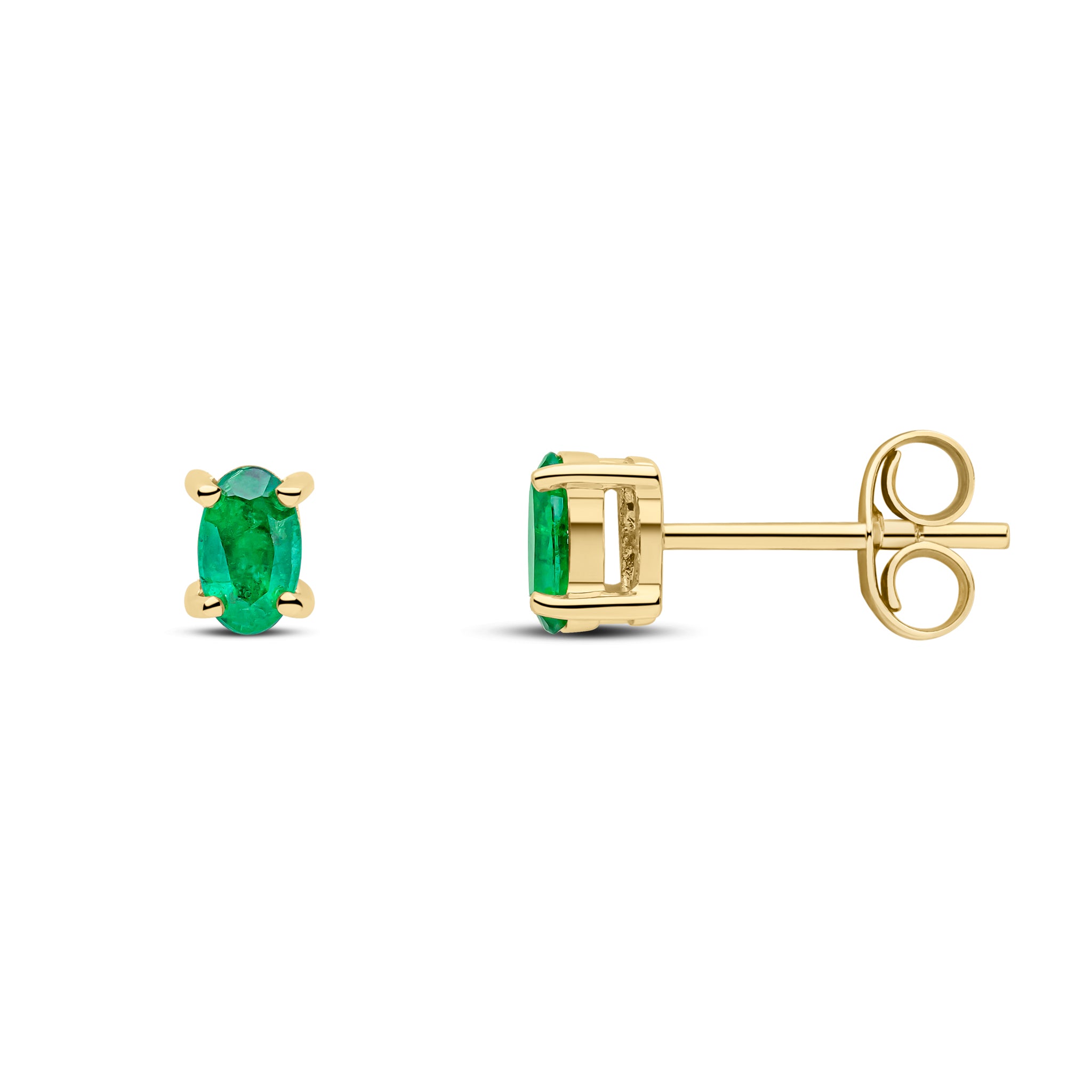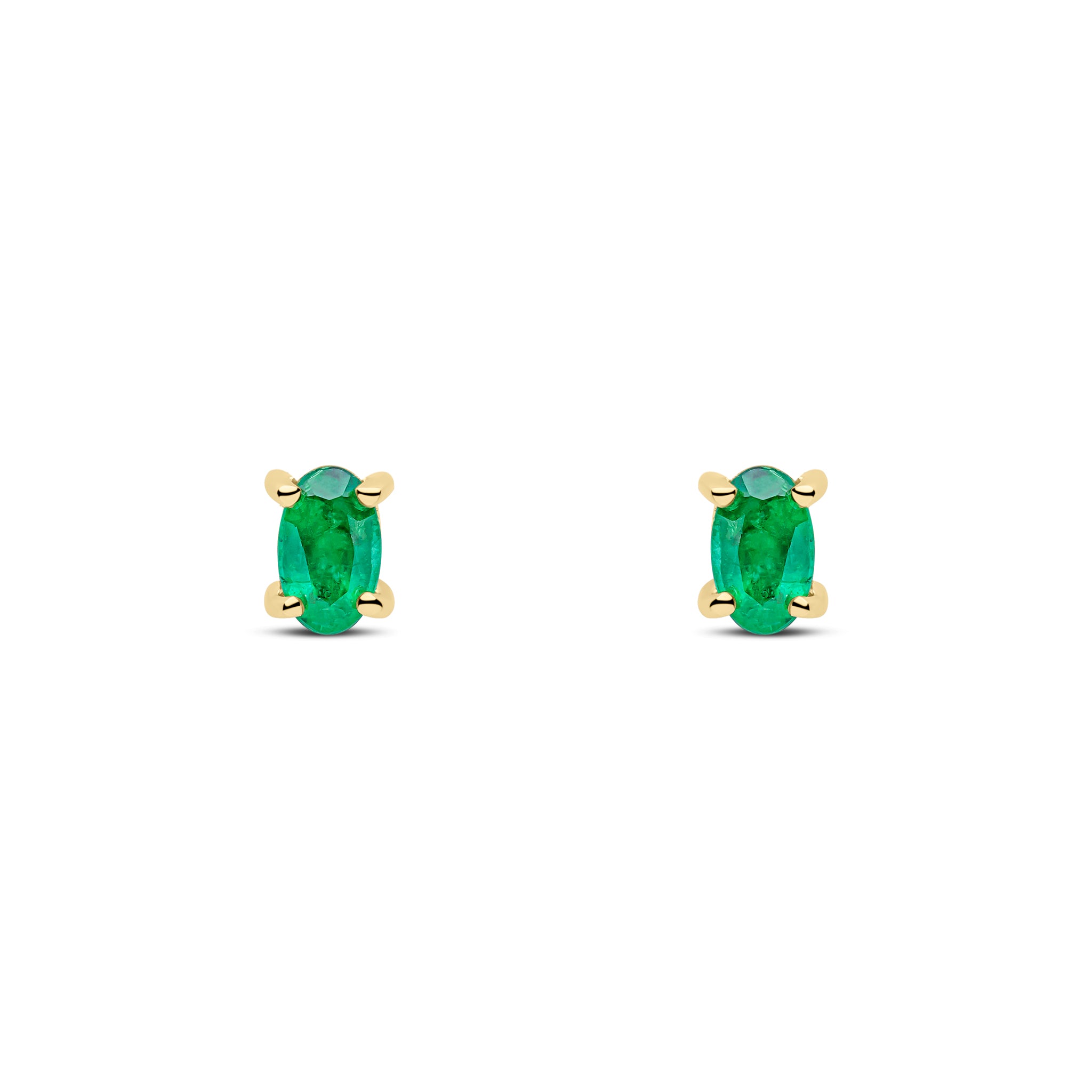 9CT Yellow Gold Oval Emerald Claw Stud Earrings 5x3mm