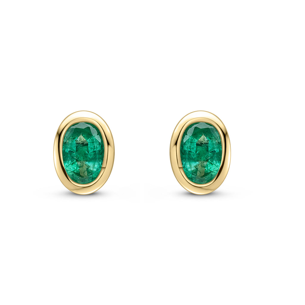 9CT Yellow Gold Oval Emerald Rubover Stud Earrings 4x3mm