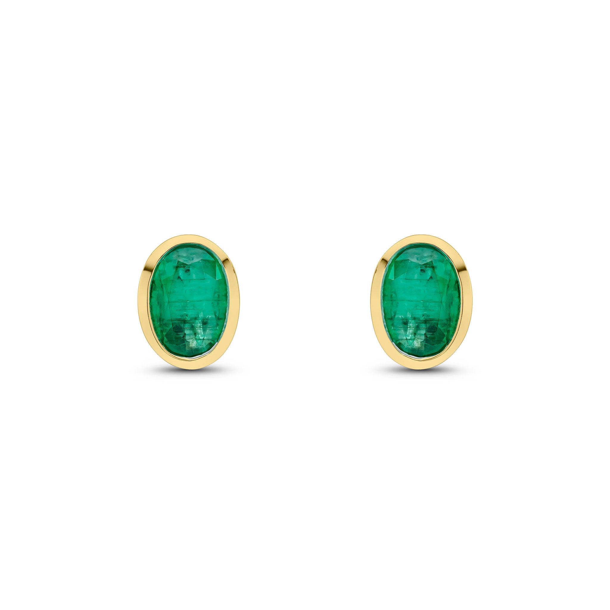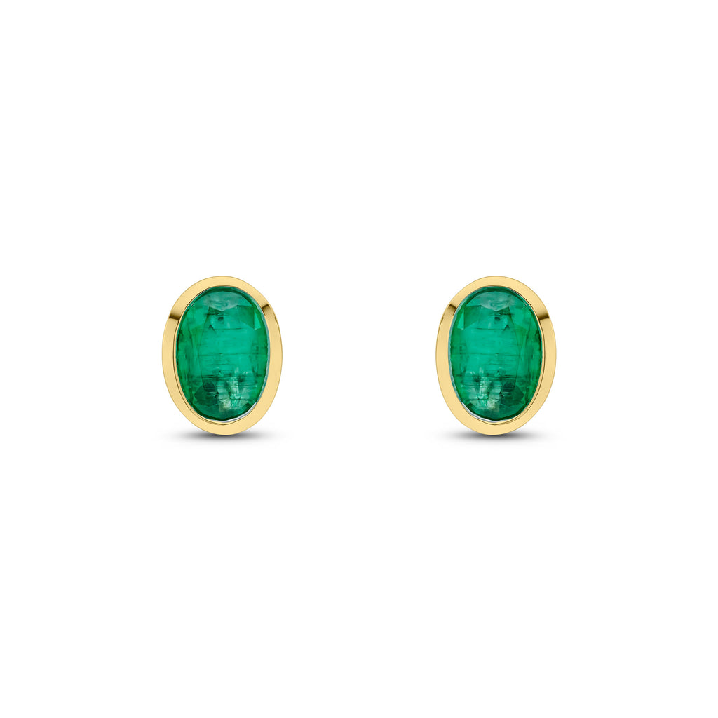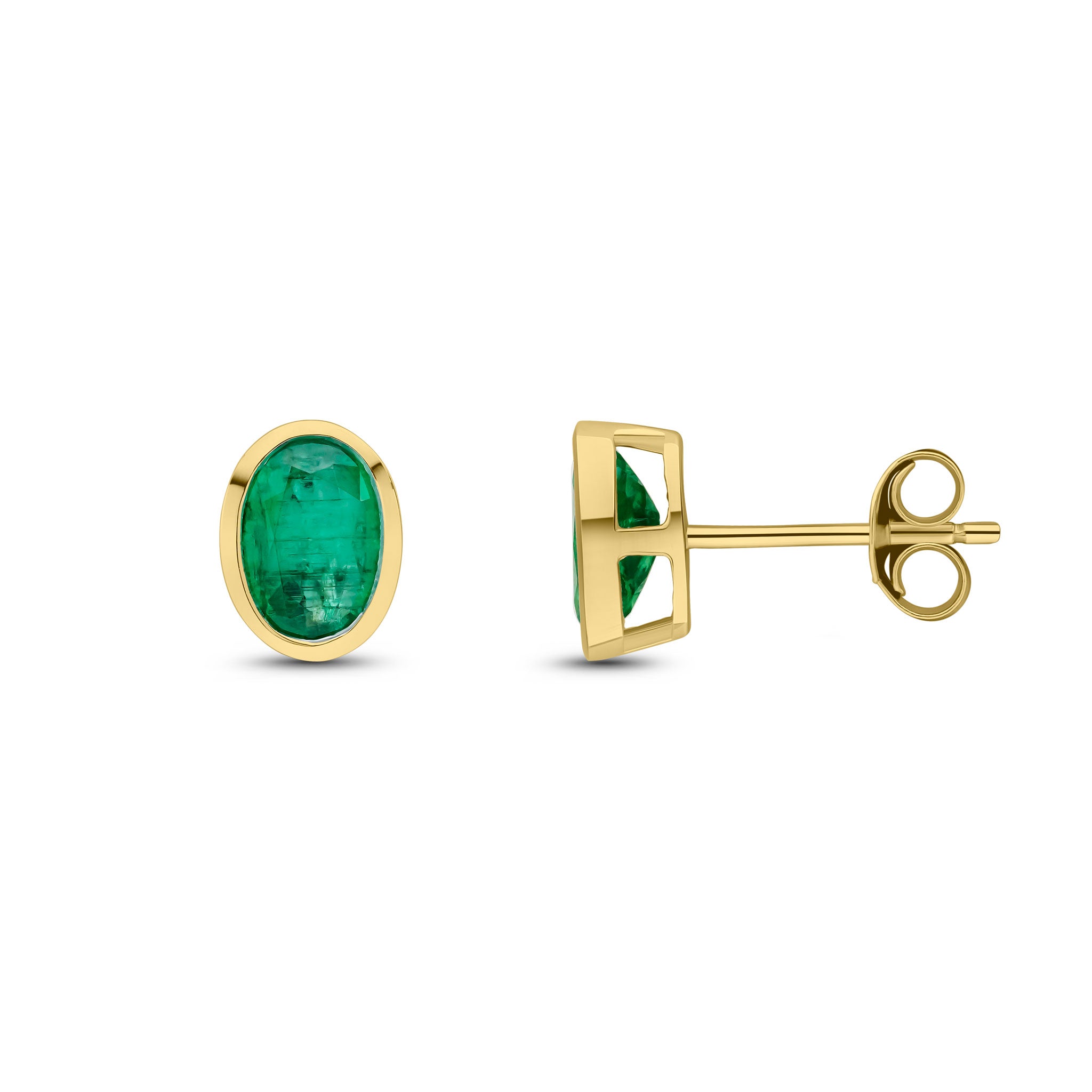 9CT Yellow Gold Oval Emerald Rubover Stud Earrings 7x5mm