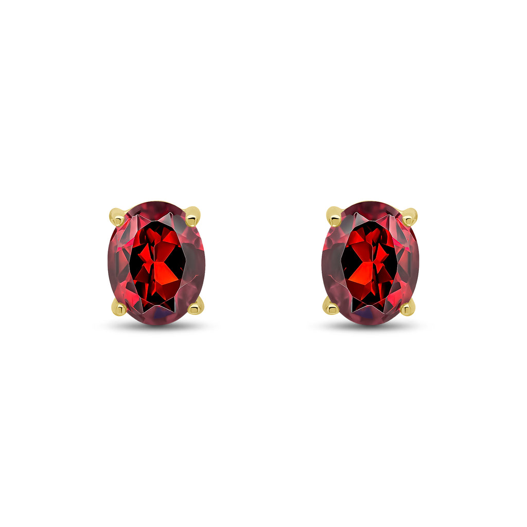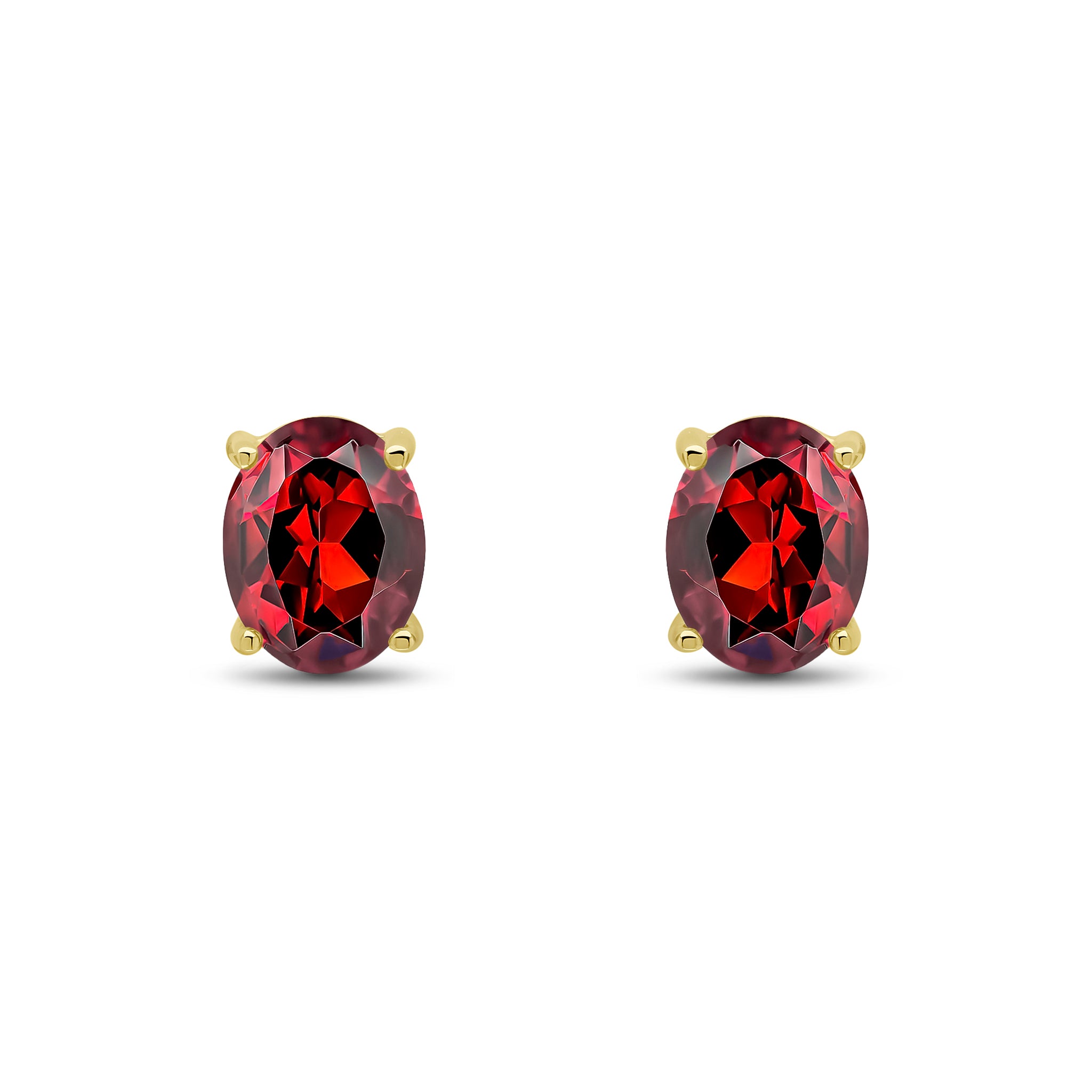 9CT Yellow Gold Oval Garnet Claw Stud Earrings 9x7mm