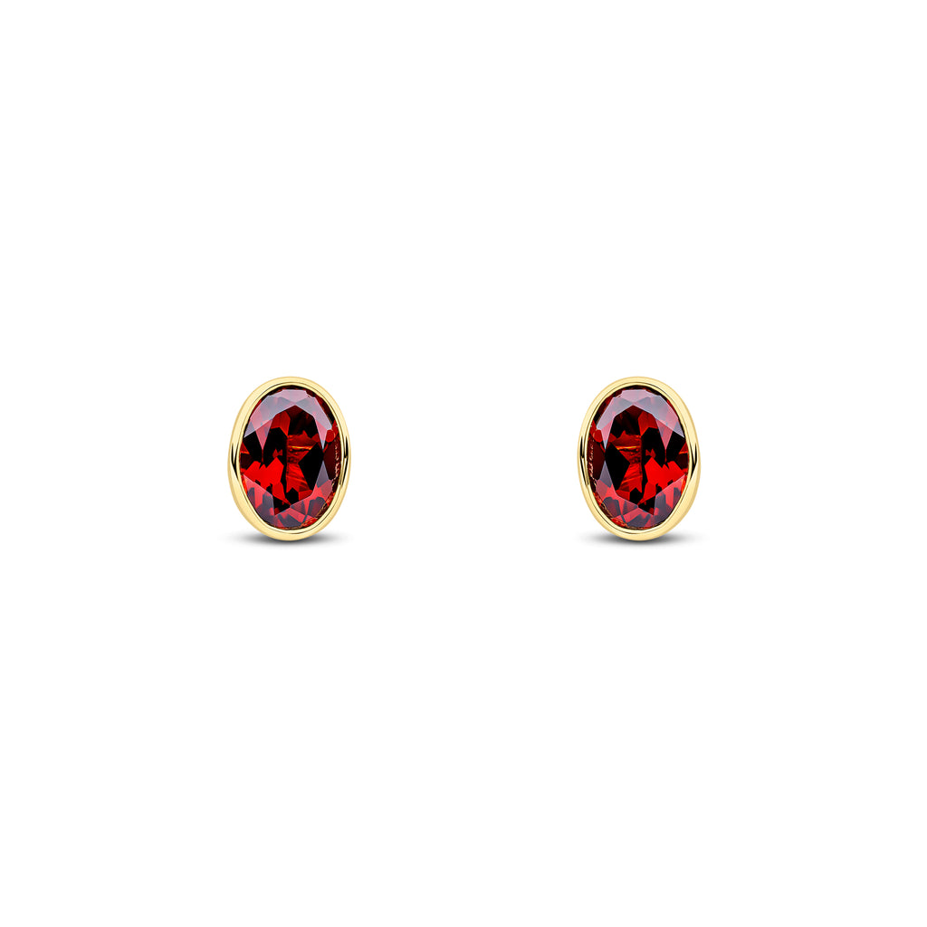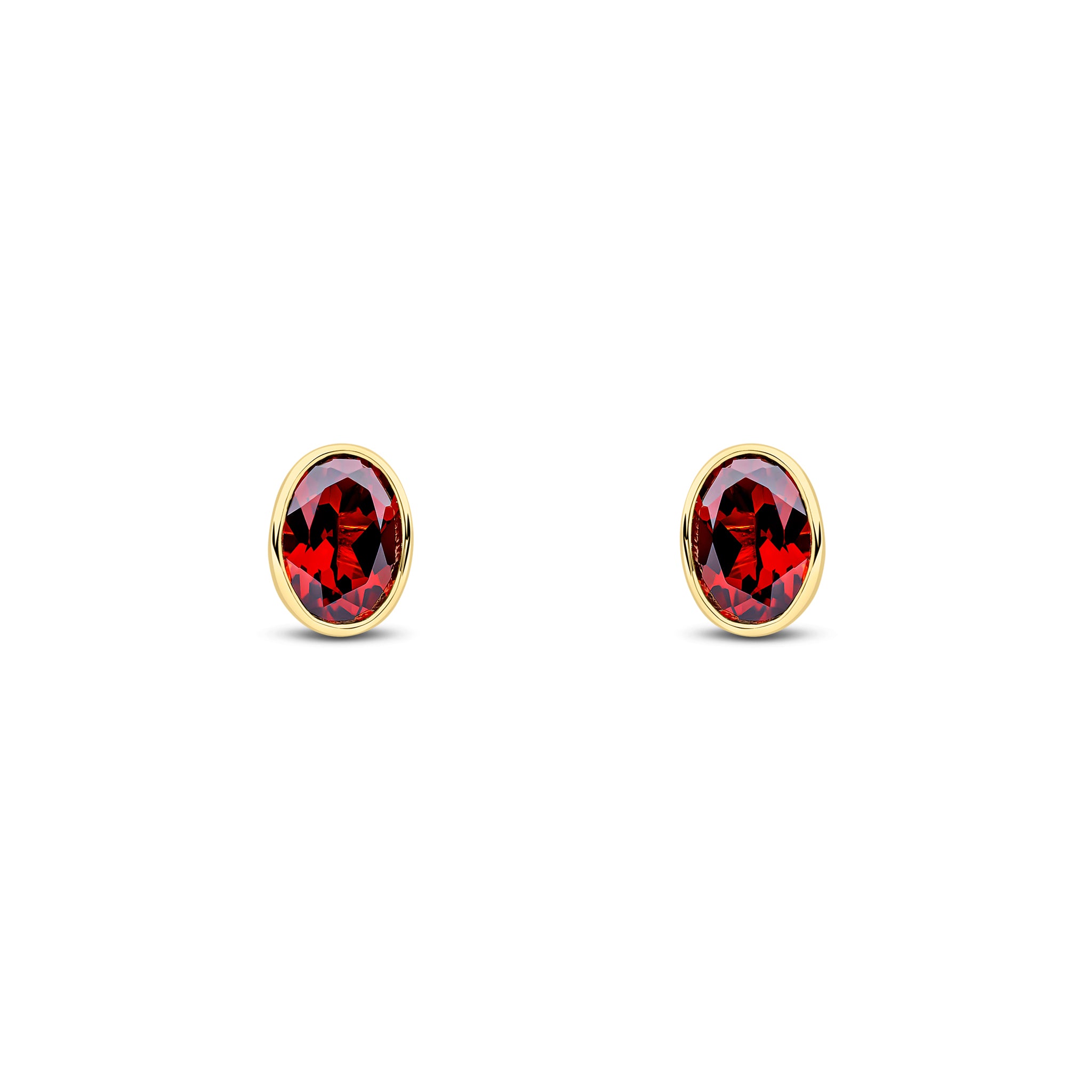 9CT Yellow Gold Oval Garnet Rubover Stud Earrings 7x5mm
