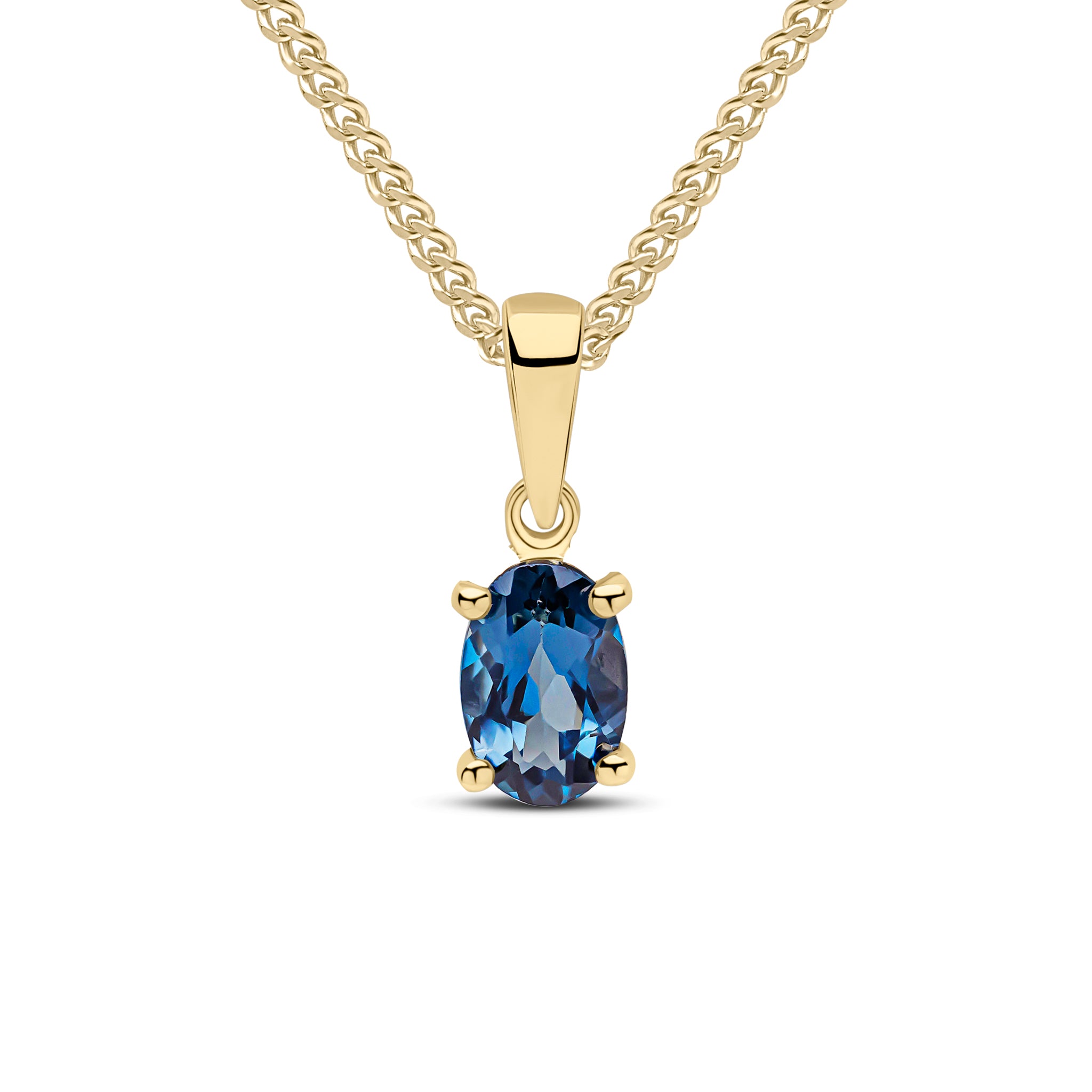 9CT Yellow Gold Oval London Blue Topaz Claw Pendant 6x4mm