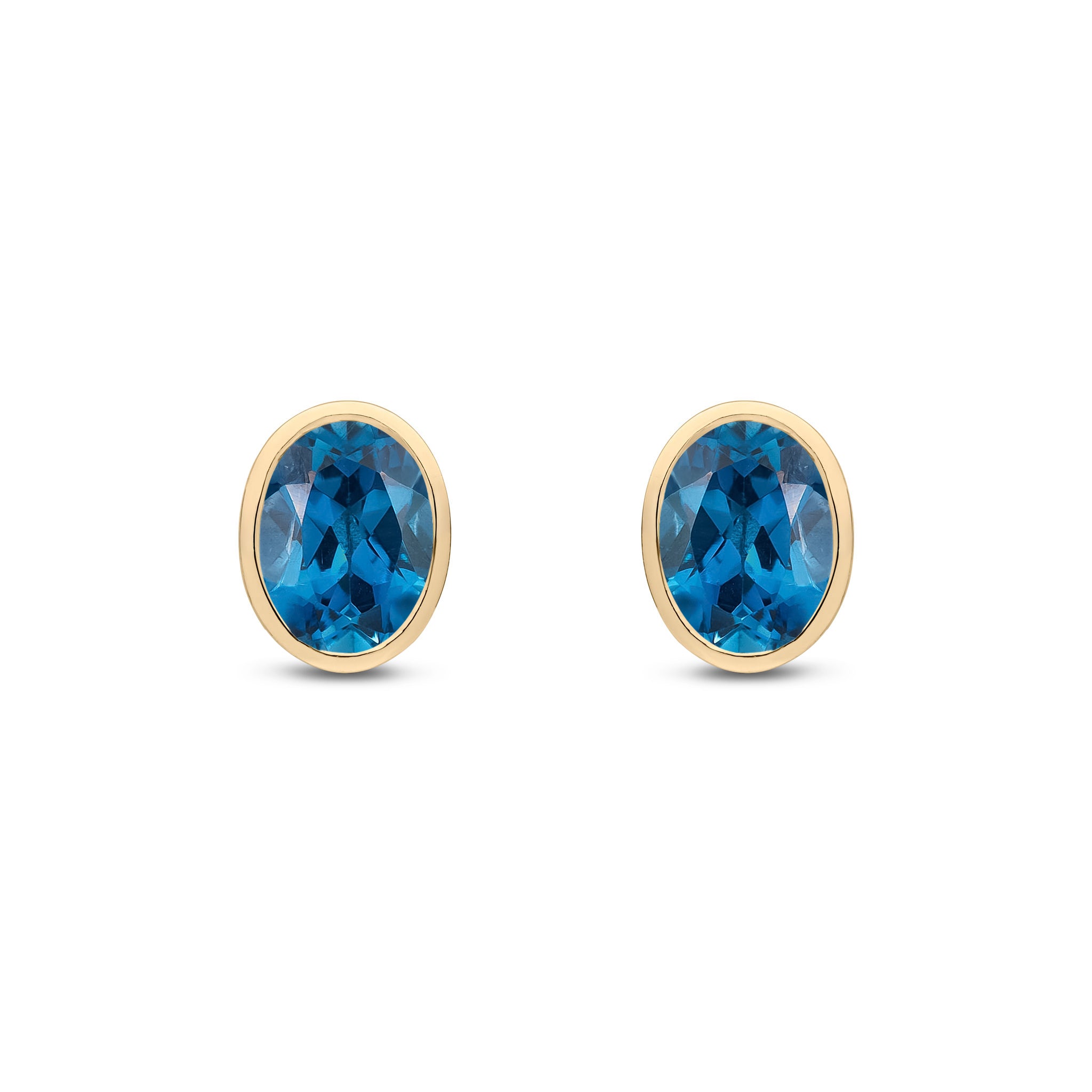 9CT Yellow Gold Oval London Blue Topaz Rubover Stud Earrings 8x6mm