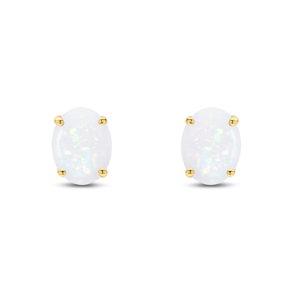 9CT Yellow Gold Oval Opal Claw Stud Earrings 8x6mm