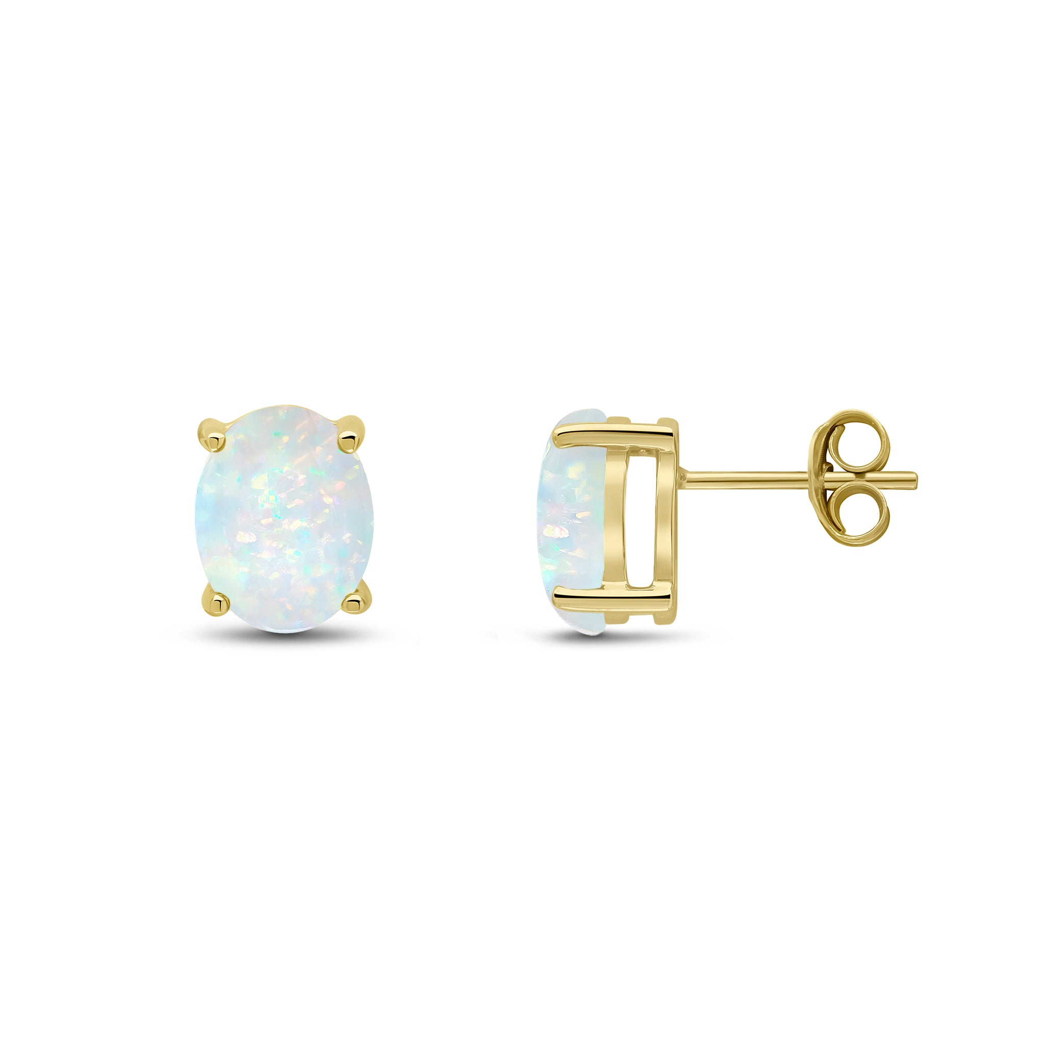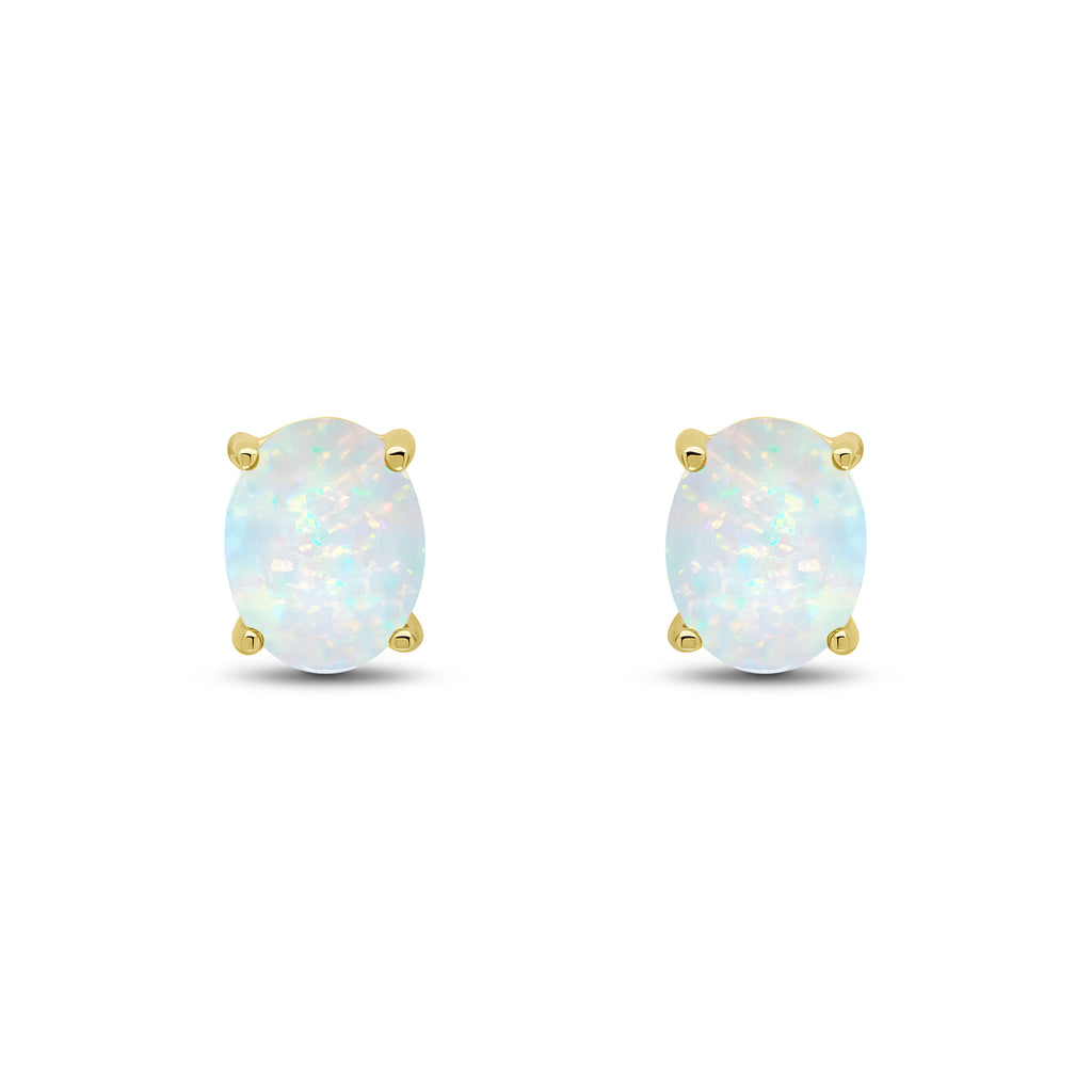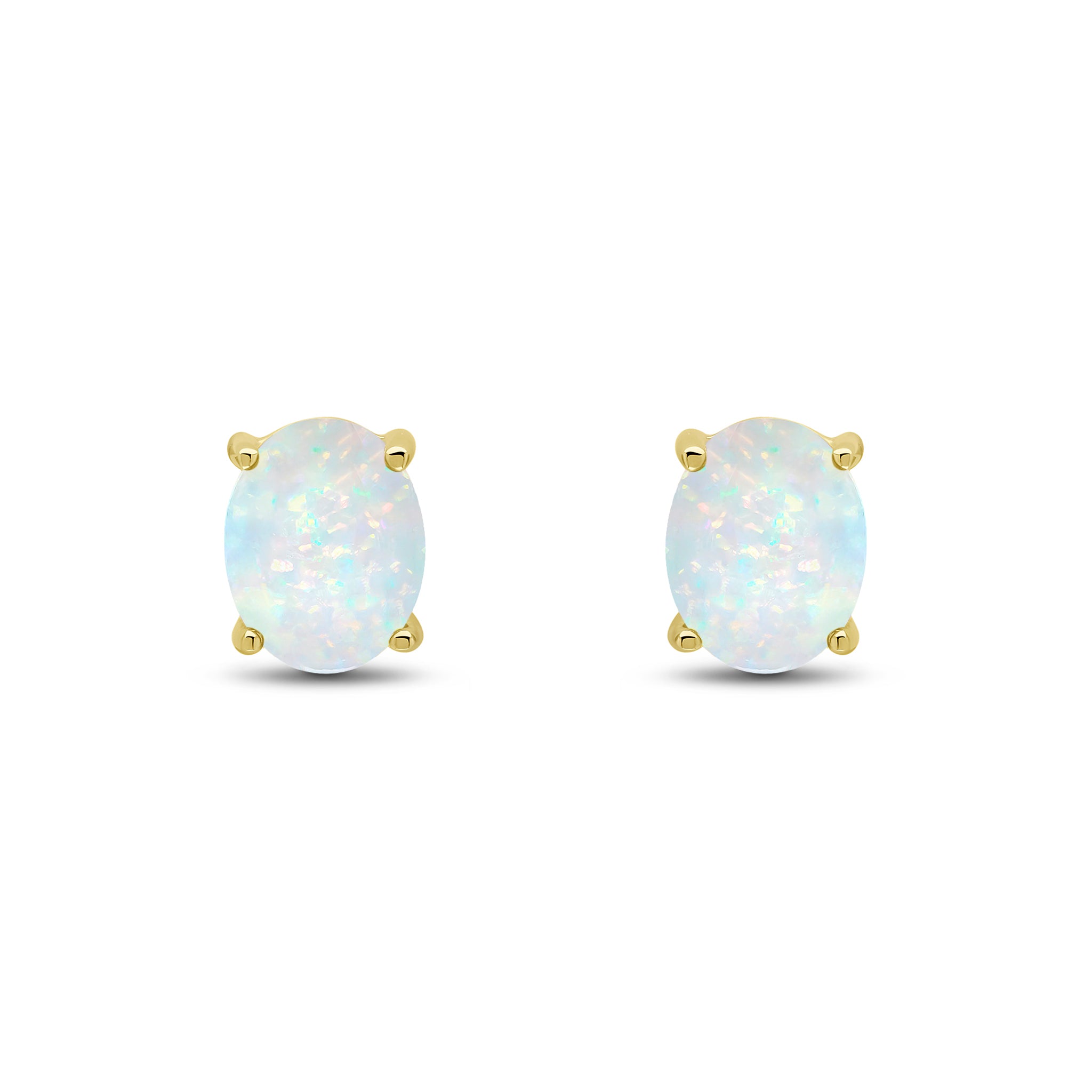 9CT Yellow Gold Oval Opal Claw Stud Earrings 9x7mm