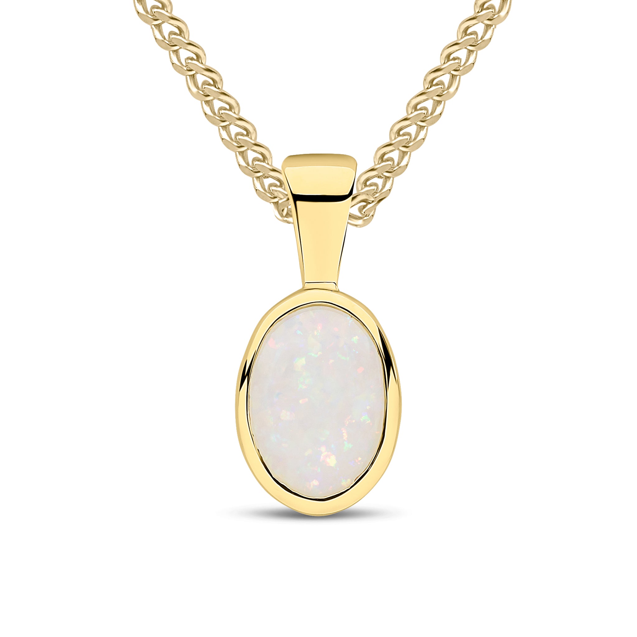 9CT Yellow Gold Oval Opal Rubover Pendant 7x5mm