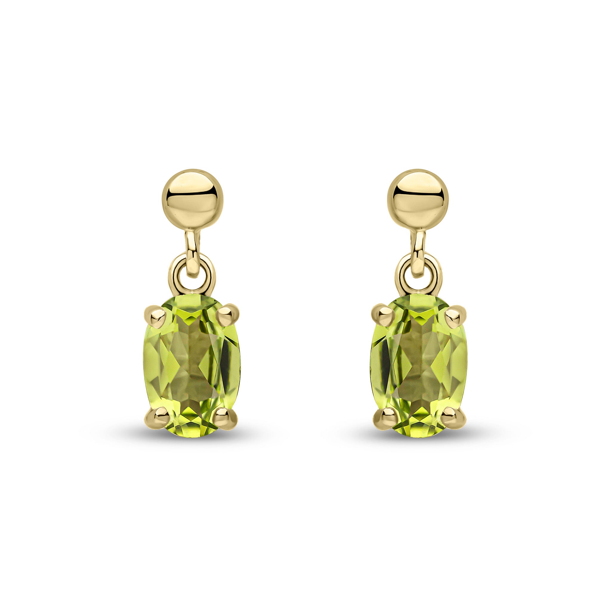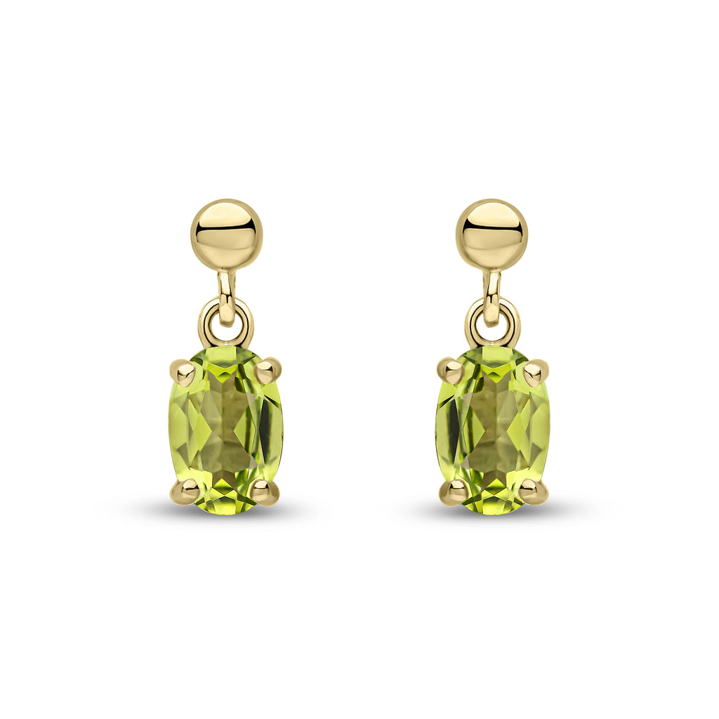 9CT Yellow Gold Oval Peridot Claw Drop Earrings 6x4mm