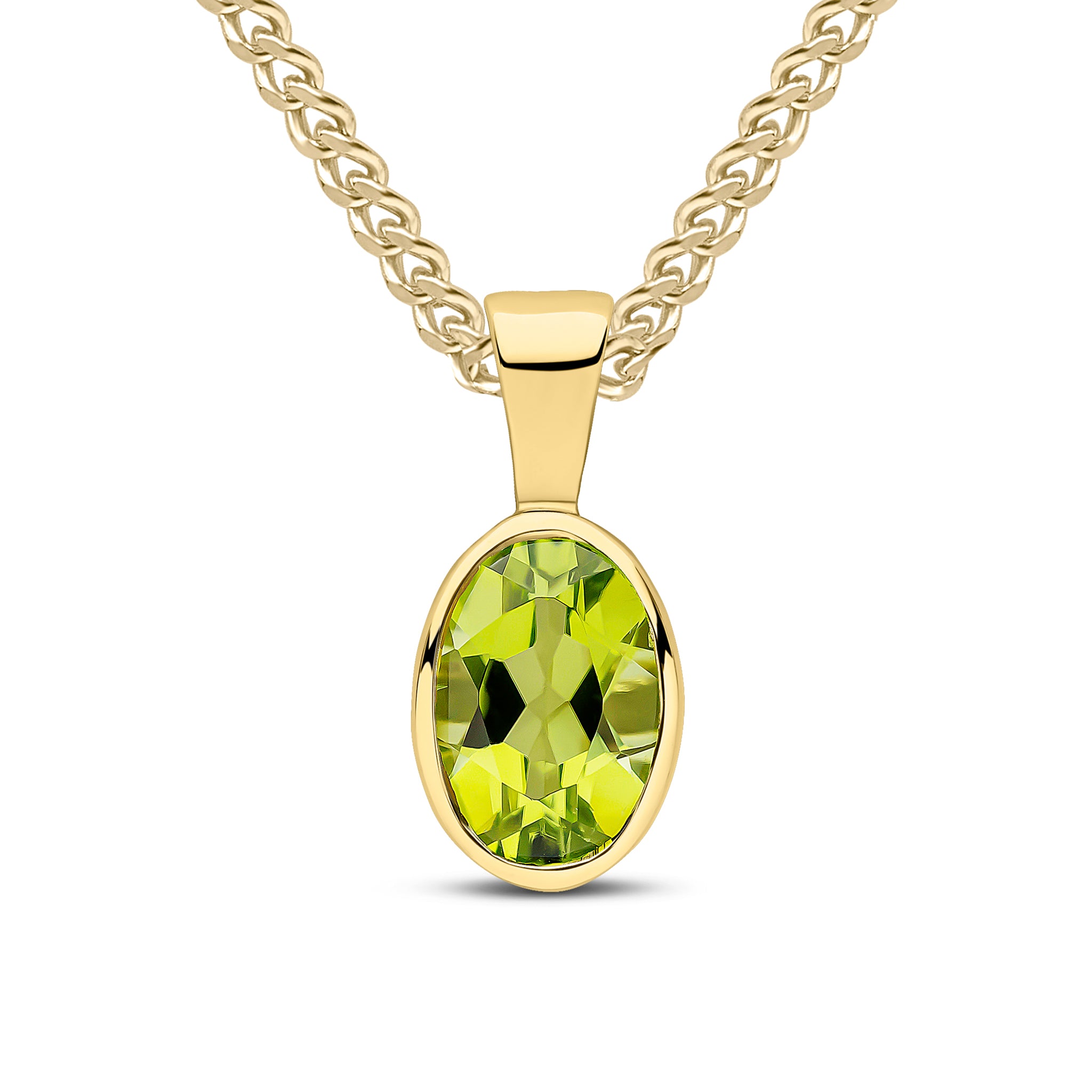 9CT Yellow Gold Oval Peridot Rubover Pendant 7x5mm