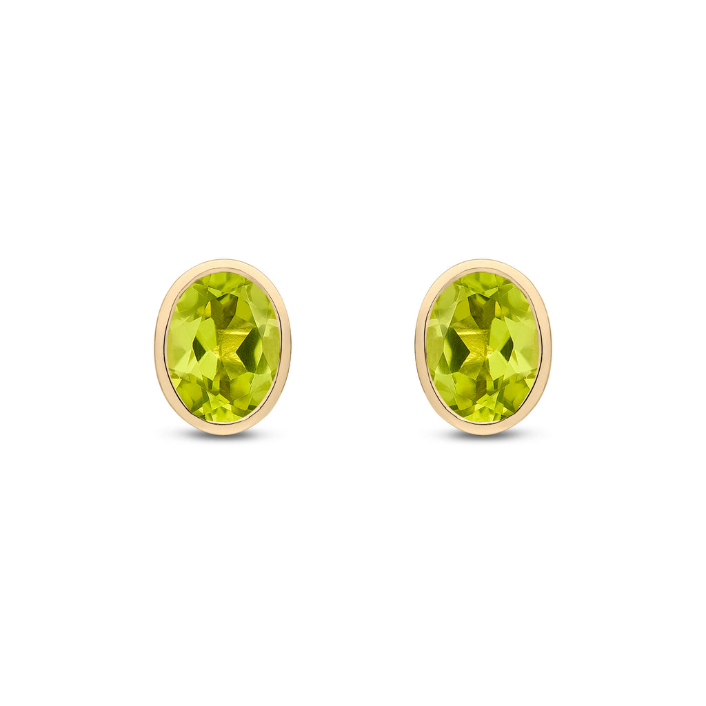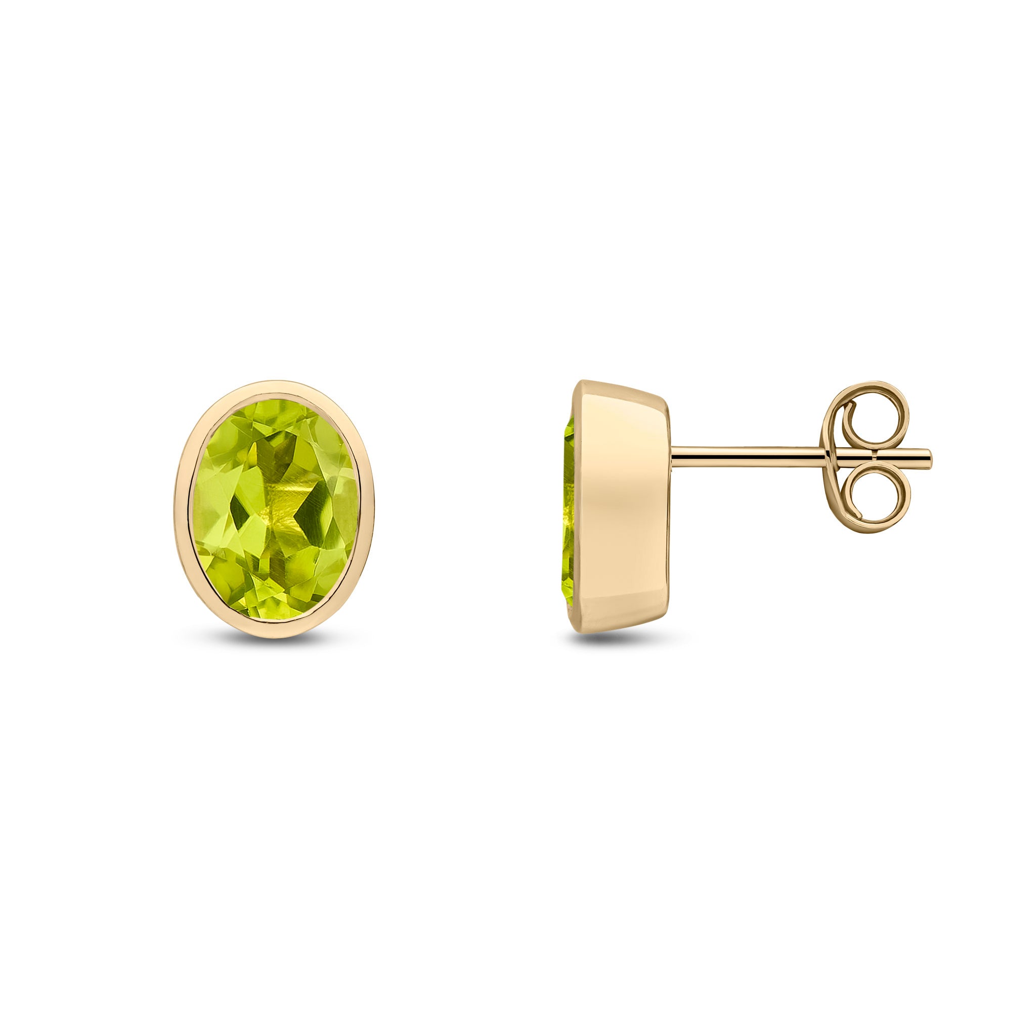 9CT Yellow Gold Oval Peridot Rubover Stud Earrings 8x6mm