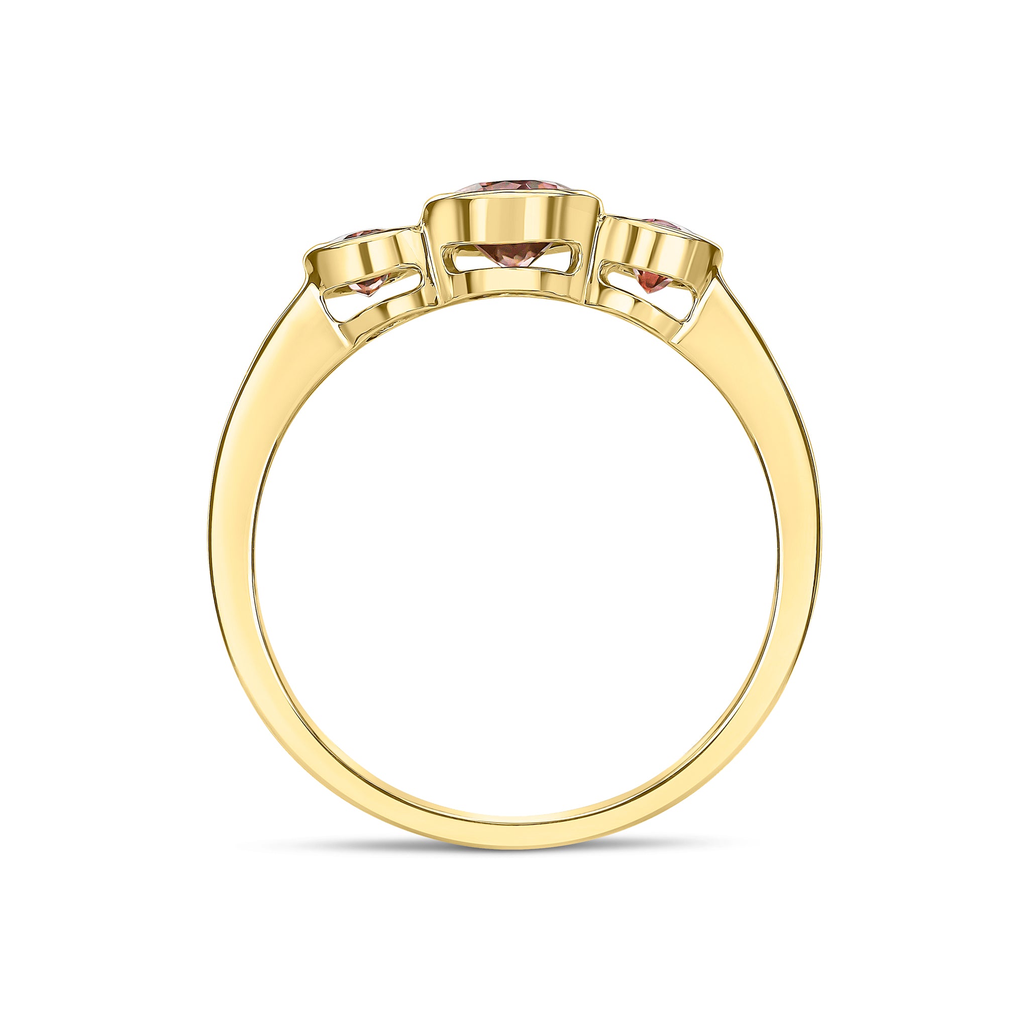 9CT Yellow Gold Oval Pink Tourmaline Rubover Three Stone Ring