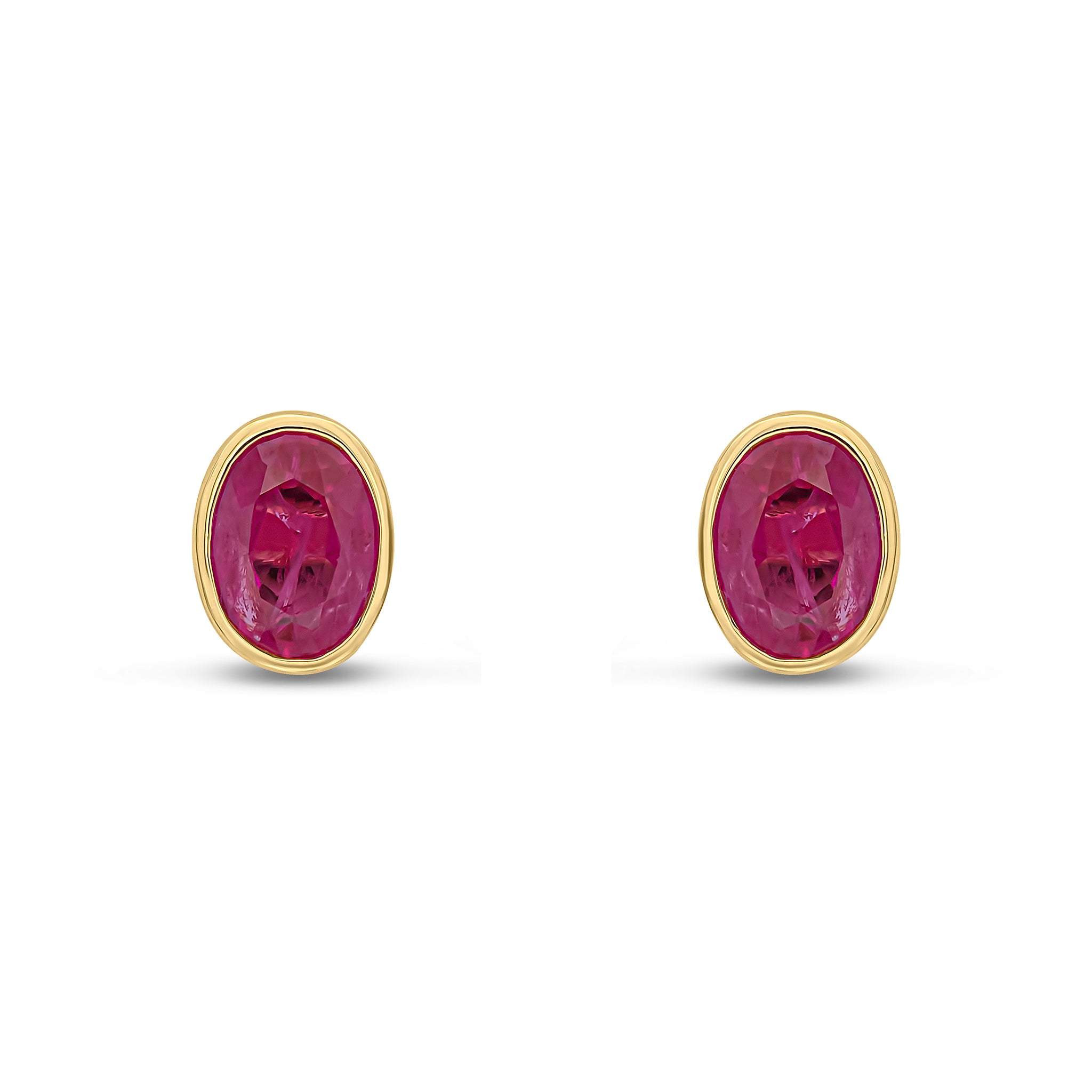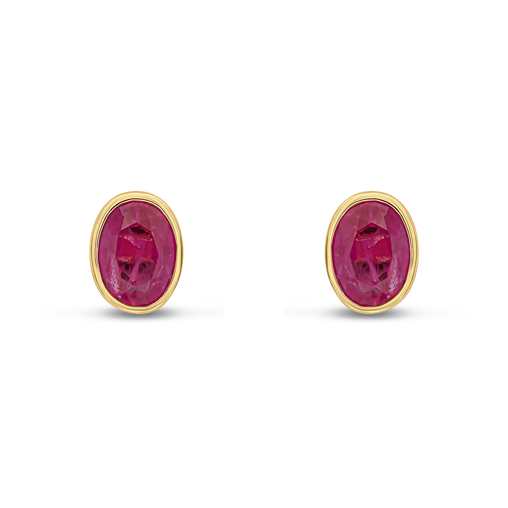 9CT Yellow Gold Oval Ruby Rubover Stud Earrings 7x5mm
