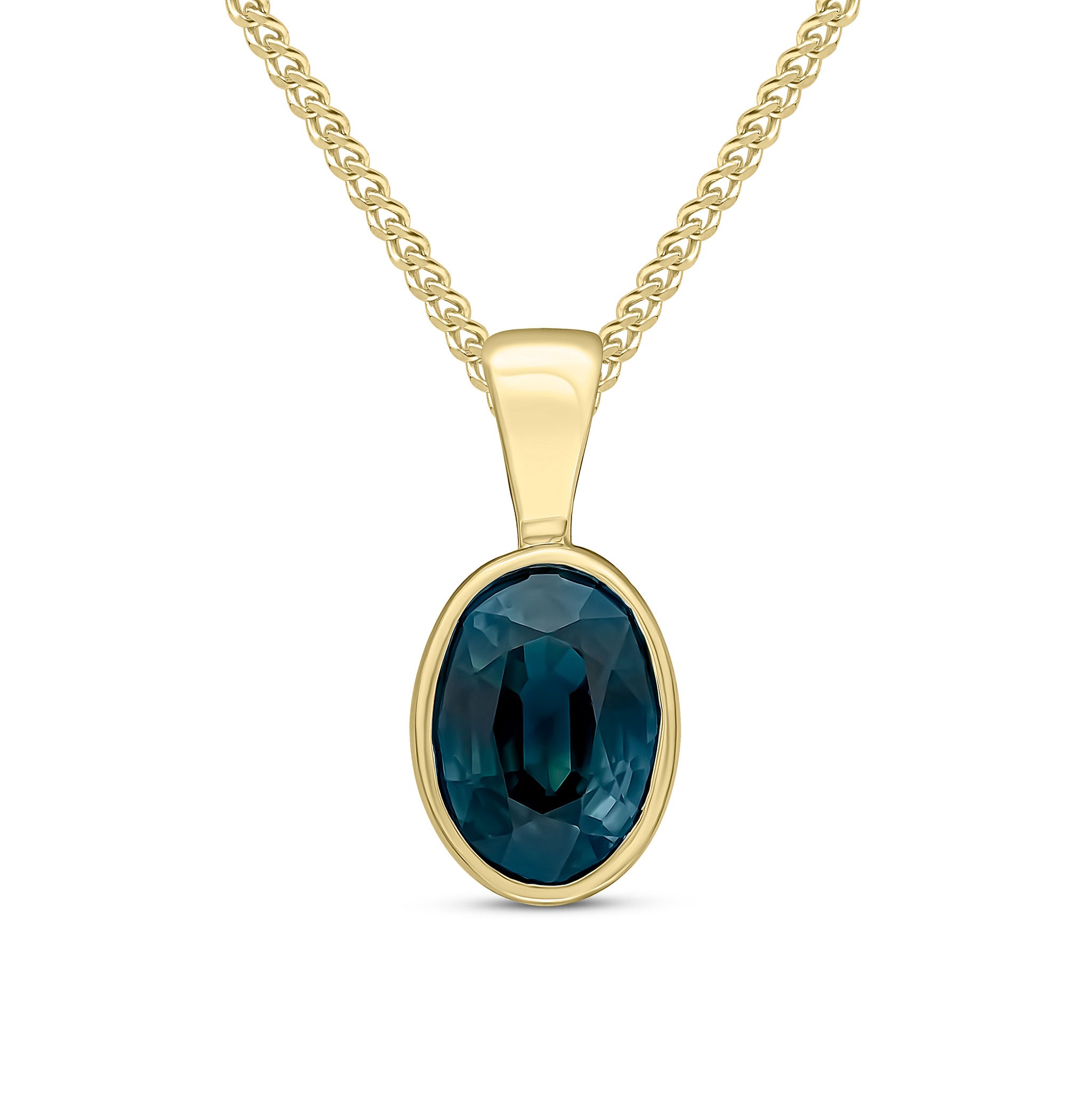 9CT Yellow Gold Oval Sapphire Rubover Pendant 7x5mm