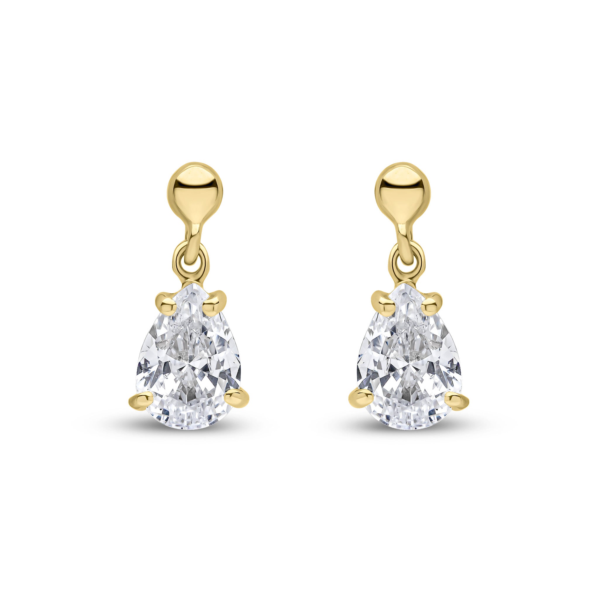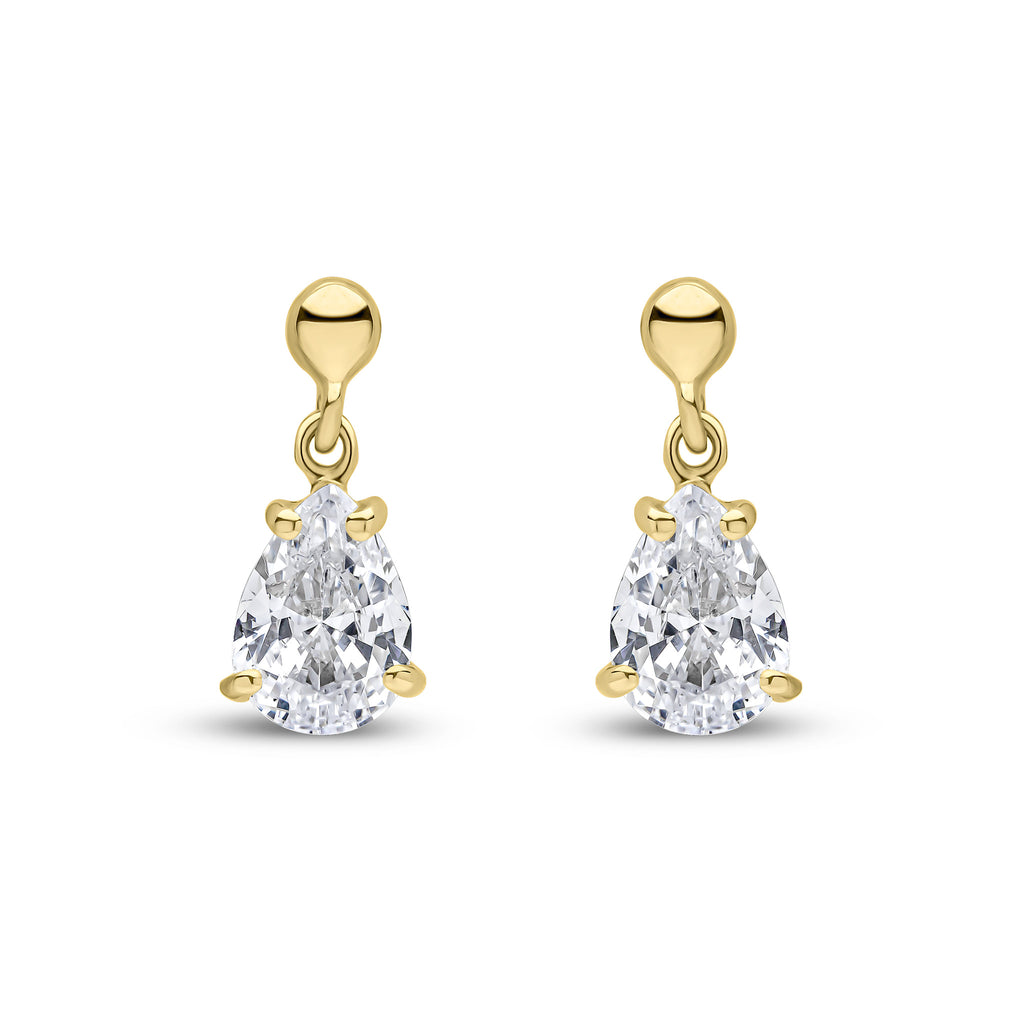 9CT Yellow Gold Pear Shaped Shaped Cubic Zirconia CZ Drop Earrings 7x5mm