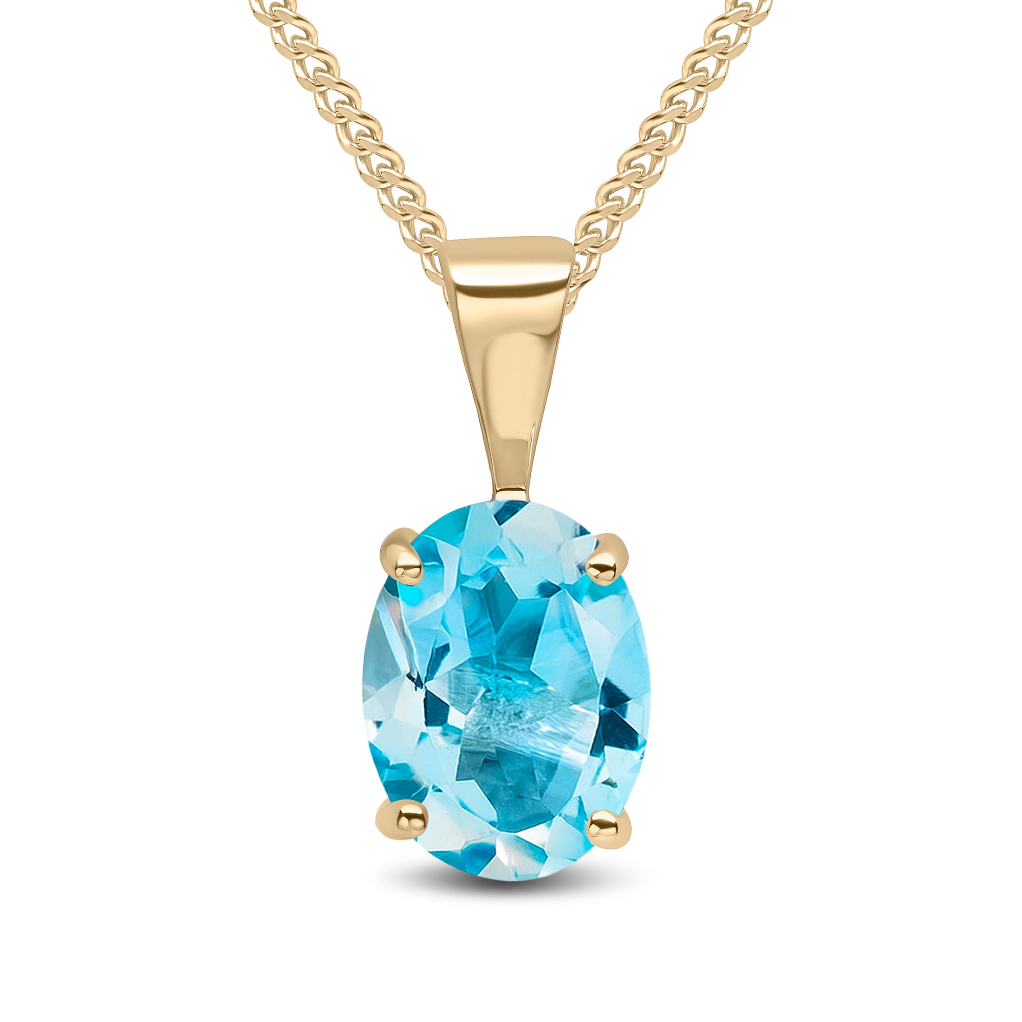 9CT Yellow Gold Oval Swiss Blue Topaz Claw Pendant 8x6mm