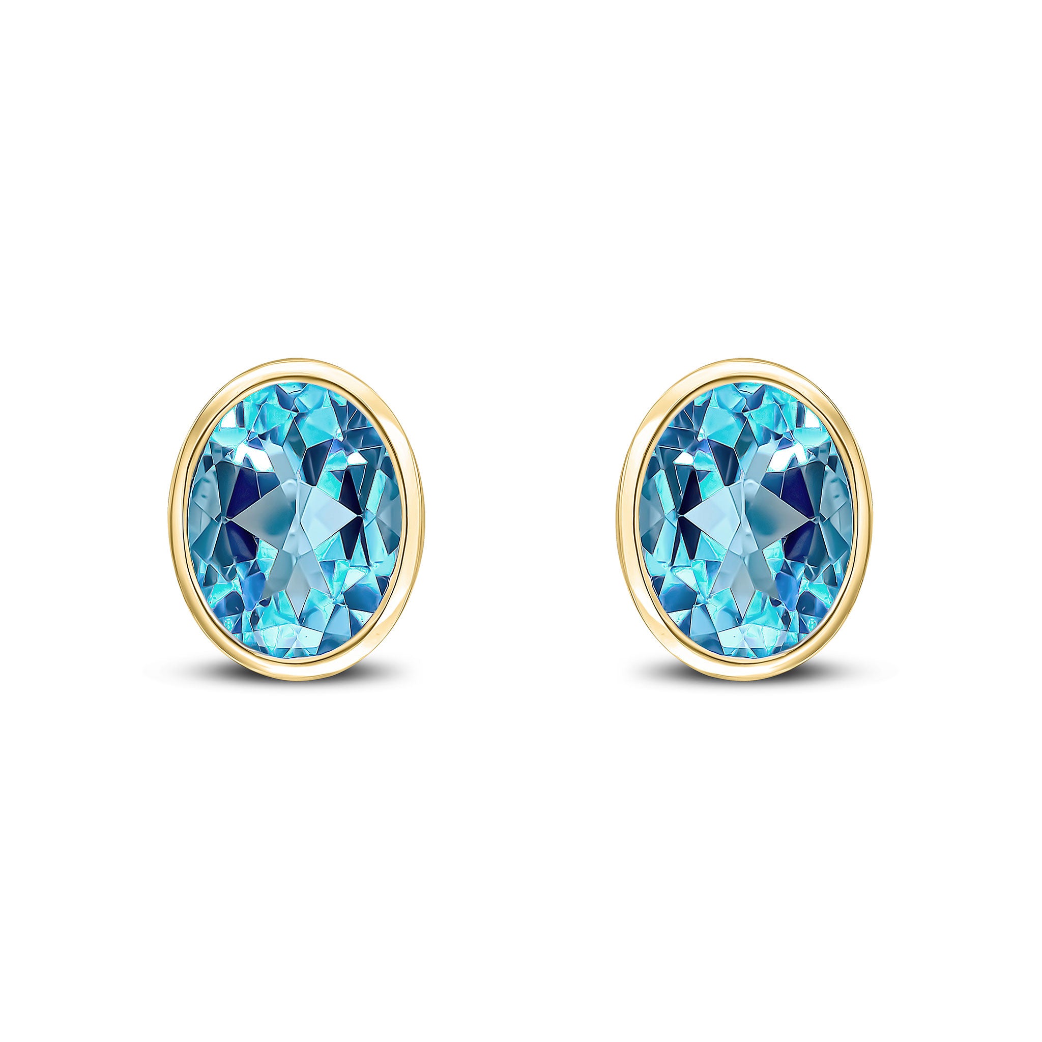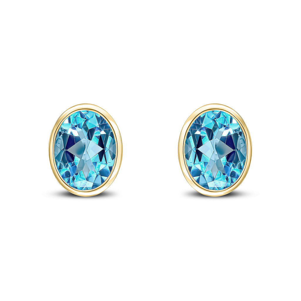 9CT Yellow Gold Oval Swiss Blue Topaz Rubover Stud Earrings 9x7mm