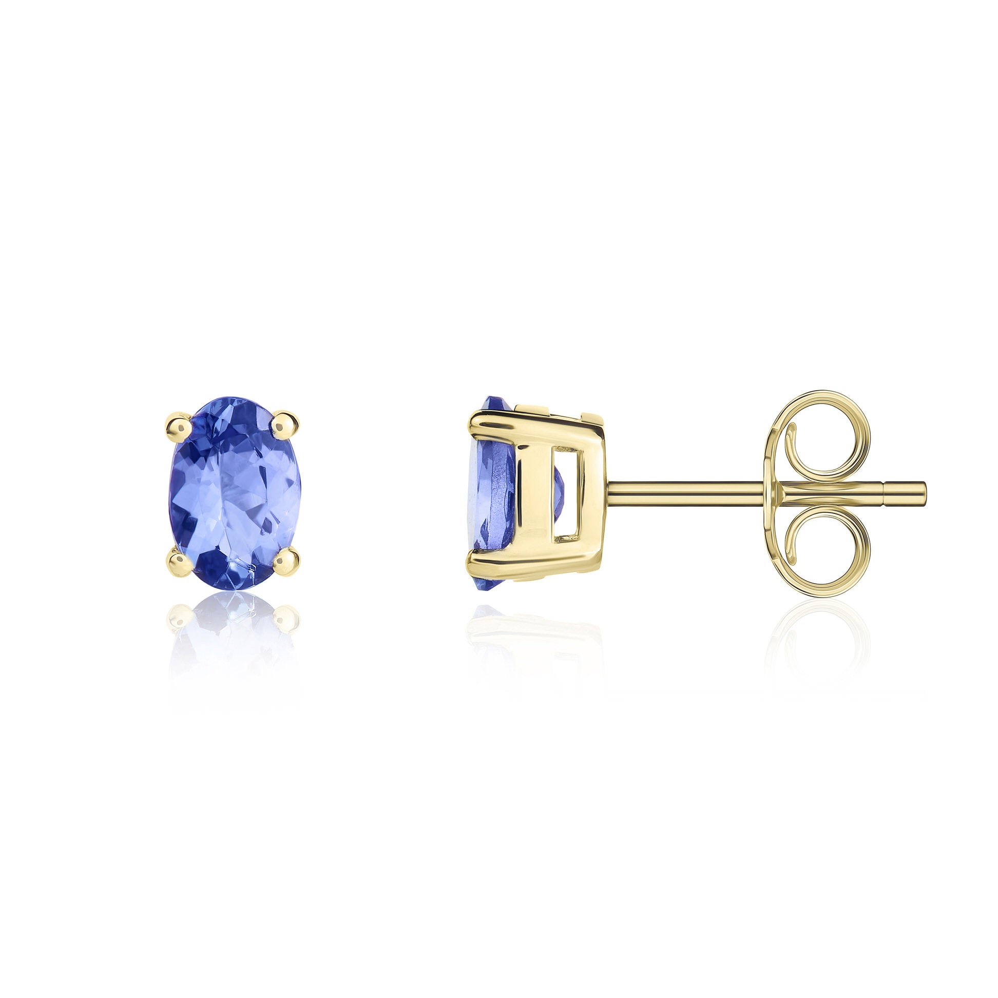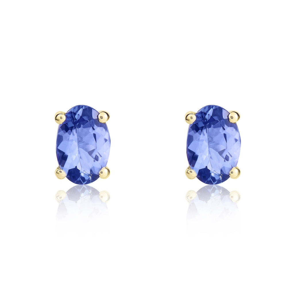 9CT Yellow Gold Oval Tanzanite Claw Stud Earrings 6x4mm