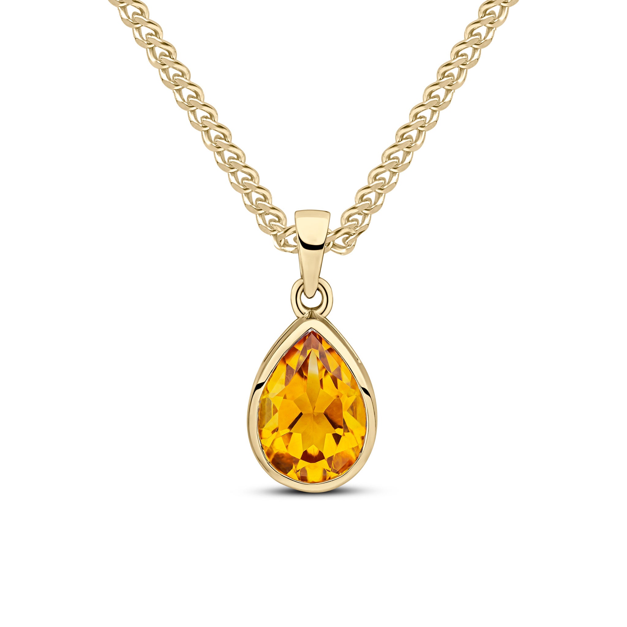 9CT Yellow Gold Pear Shaped Citrine Rubover Pendant 10x7mm