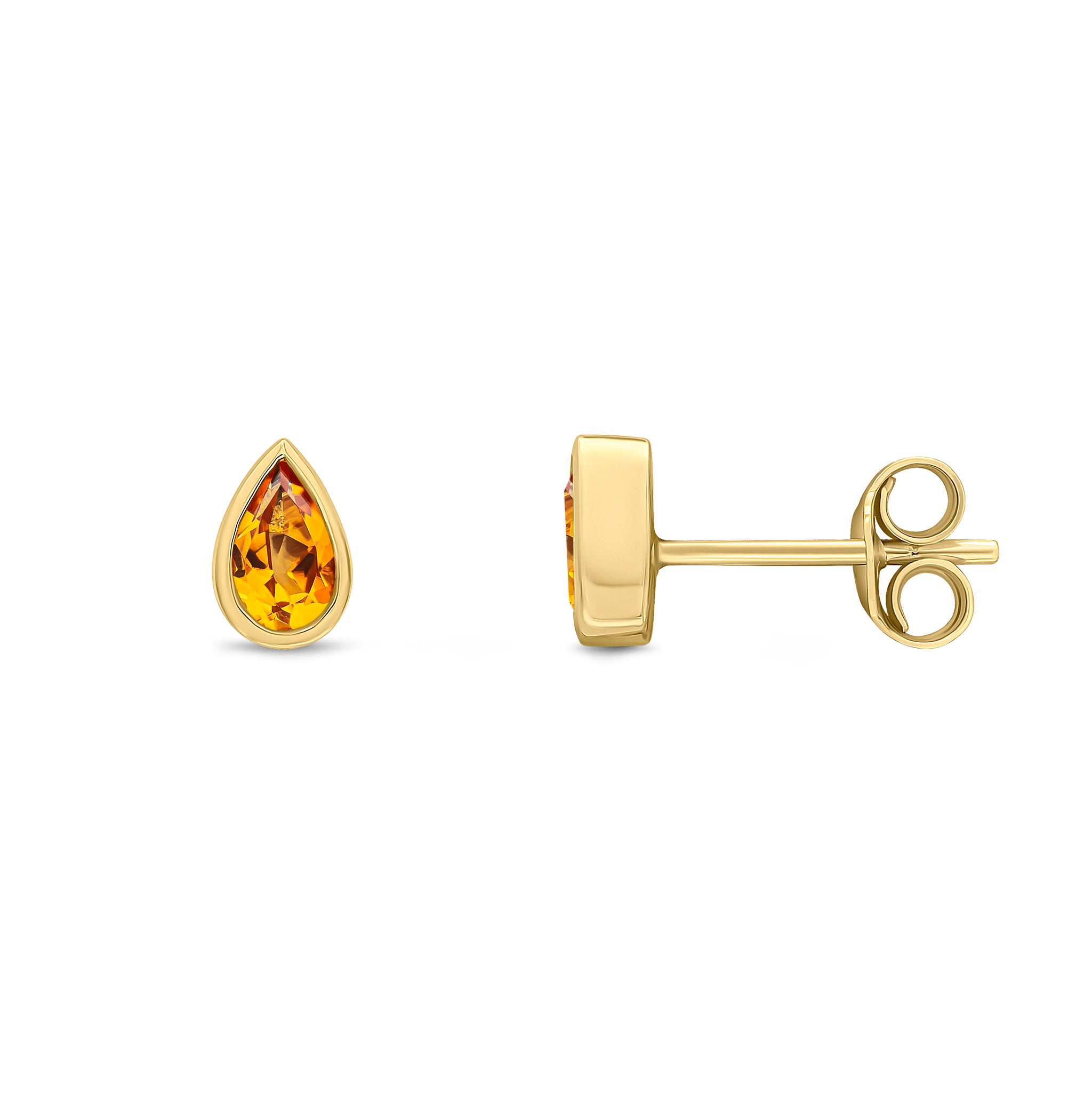 9CT Yellow Gold Pear Shaped Citrine Rubover Stud Earrings 5x3mm