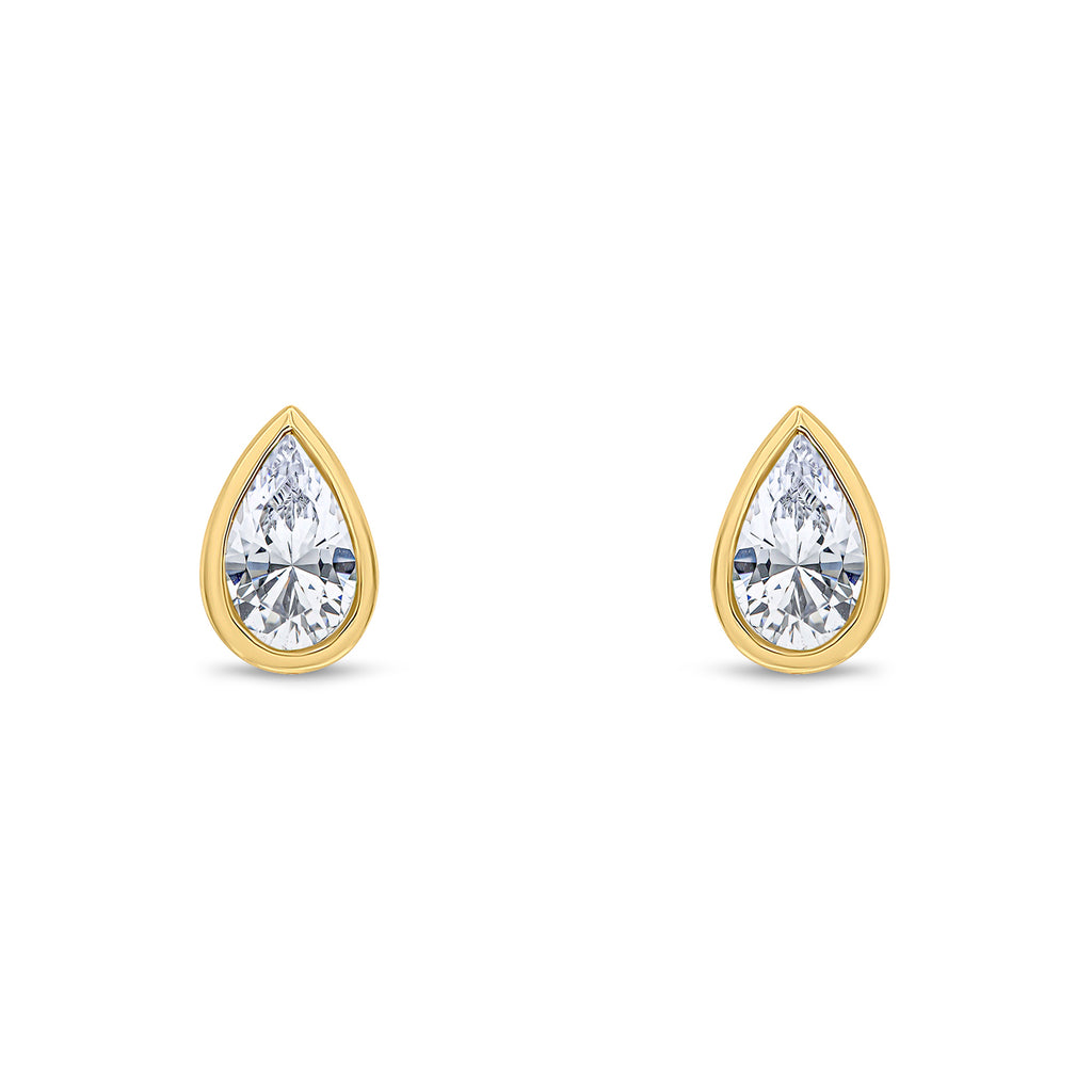 9CT Yellow Gold Pear Shaped Cubic Zirconia CZ Rubover Stud Earrings 5x3mm