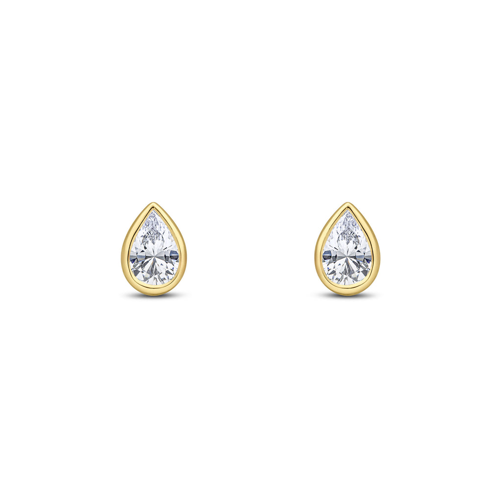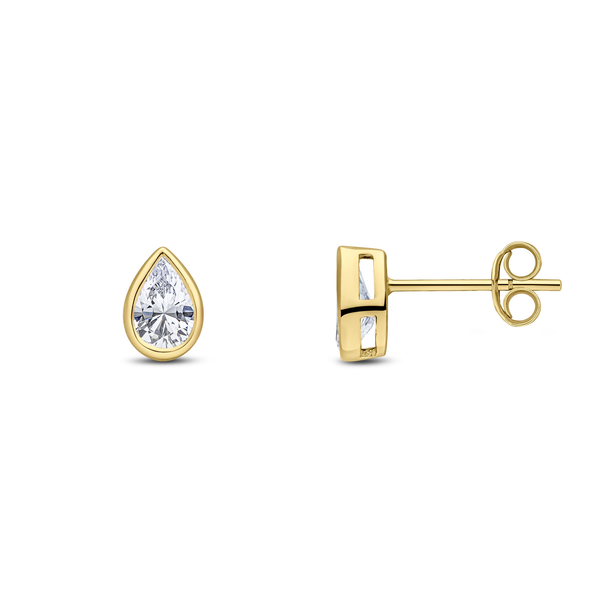 9CT Yellow Gold Pear Shaped Cubic Zirconia CZ Rubover Stud Earrings 6x4mm